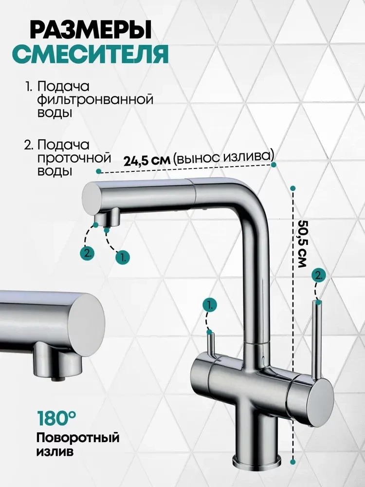 - Смеситель с подключением к фильтру и выдвижным изливом.