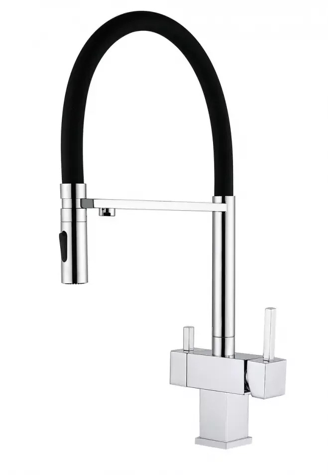 Смеситель для кухни Grocenberg GB4098CR с гибким изливом и подключением к фильтру питьевой воды, материал - латунь, цвет - хром.
