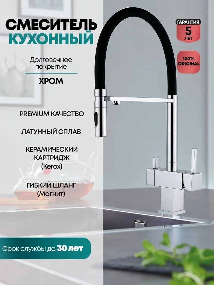Описание смеситель для кухни с подключением фильтра,смеситель для кухни с гибким изливом Grocenberg GB4098CR