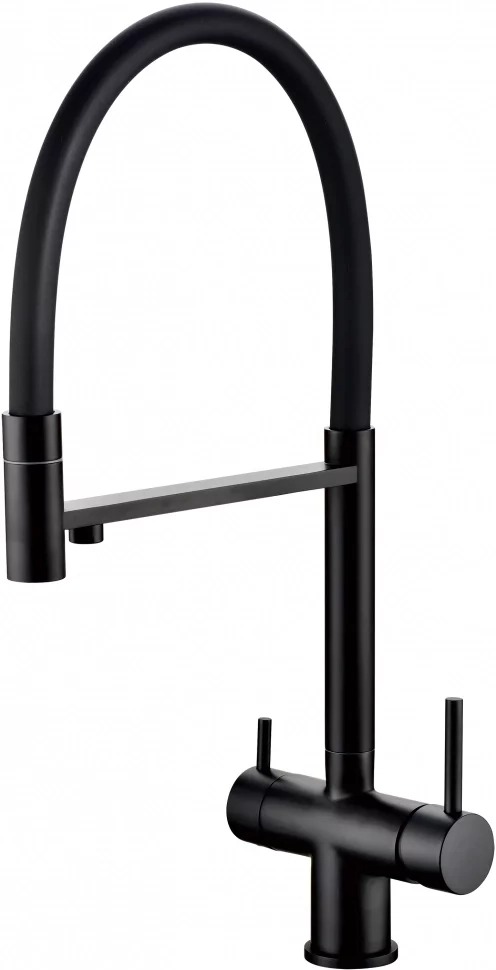Смеситель для кухни Grocenberg GB4099BL с гибким изливом и подключением к фильтру питьевой воды, материал - латунь, цвет - чёрный матовый.