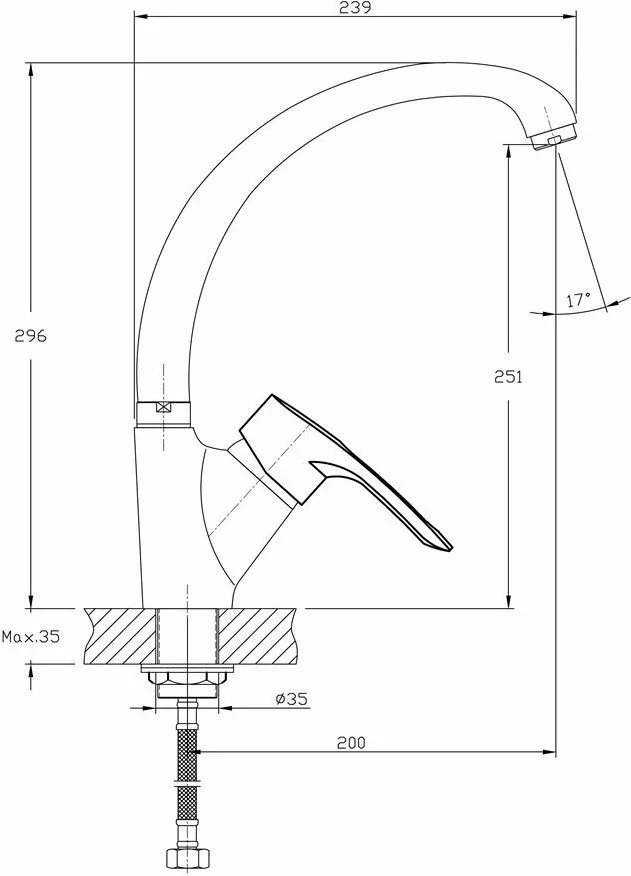 Смеситель для кухни Haiba с поворотным изливом. Материал - латунь, цвет - хром.
