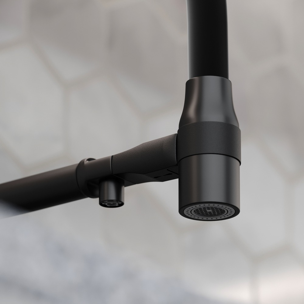 - Излив для фильтрованной воды интегрирован в держатель основного излива