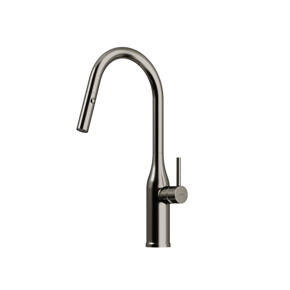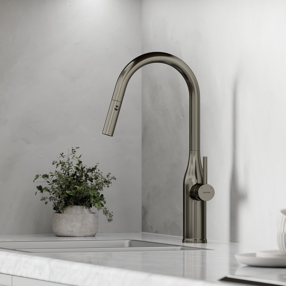 Смеситель для кухни Sancos Grand SC4002GG с выдвижным изливом, материал латунь, цвет вороненая сталь.