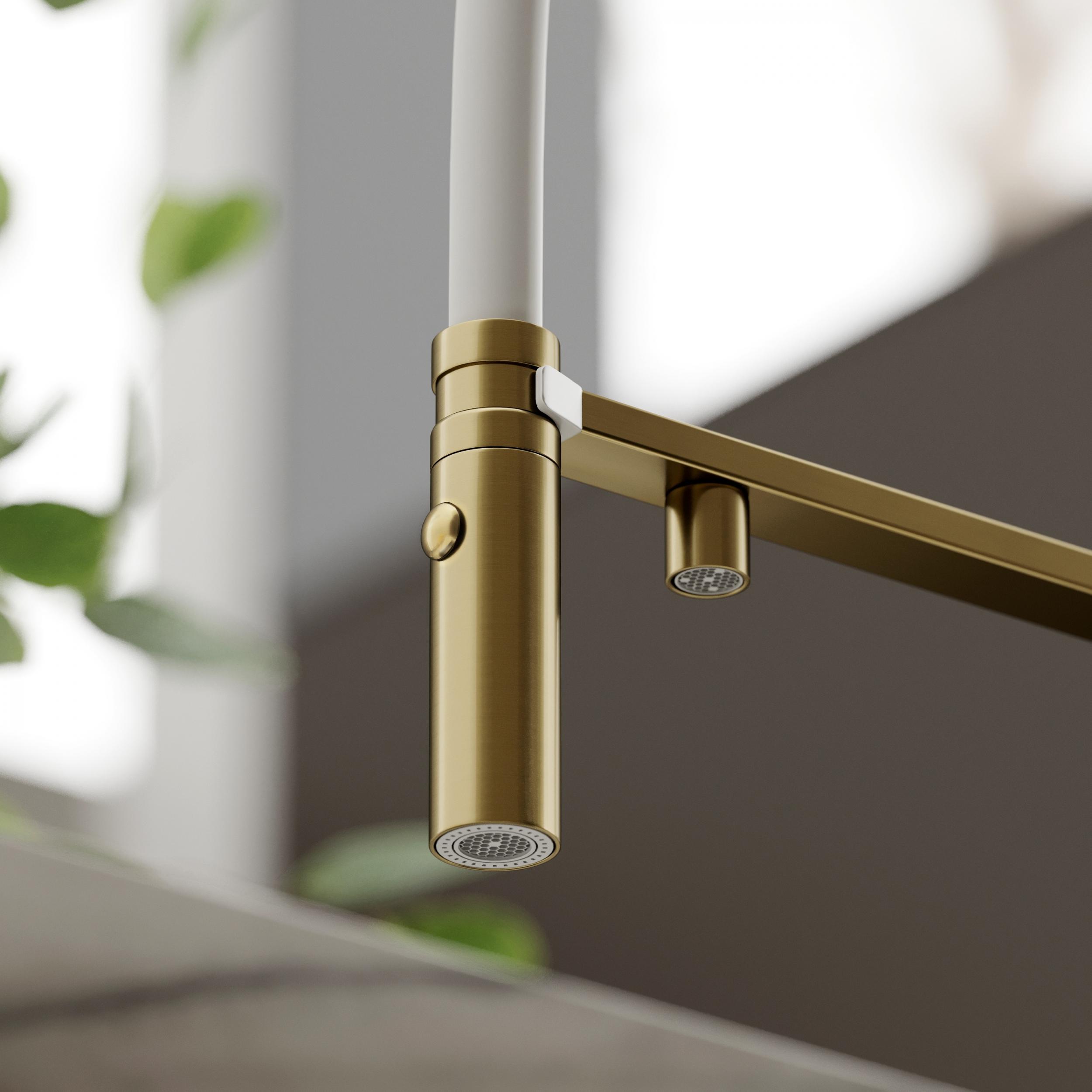 - Излив для фильтрованной воды интегрирован в держатель основного излива