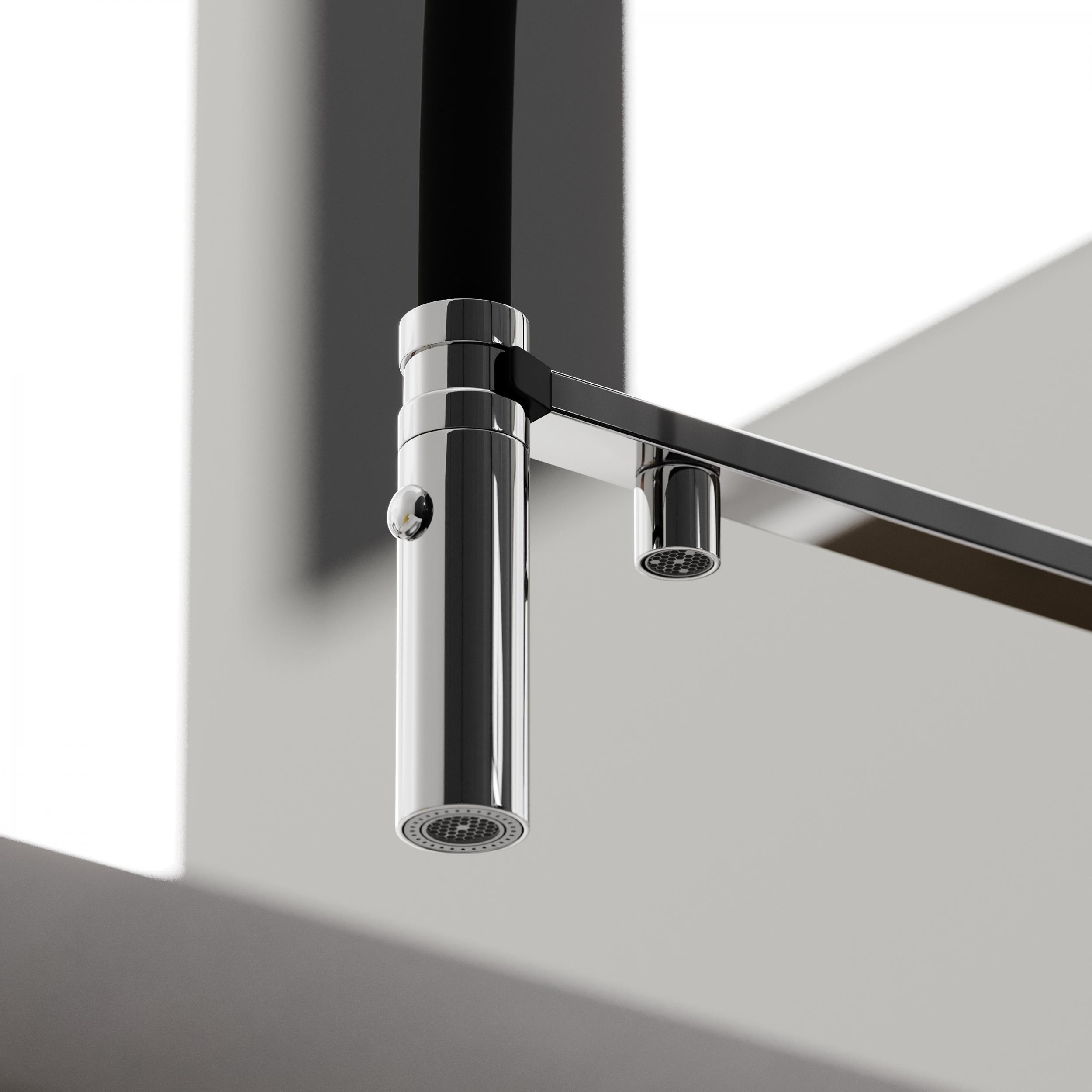 - Излив для фильтрованной воды интегрирован в держатель основного излива
