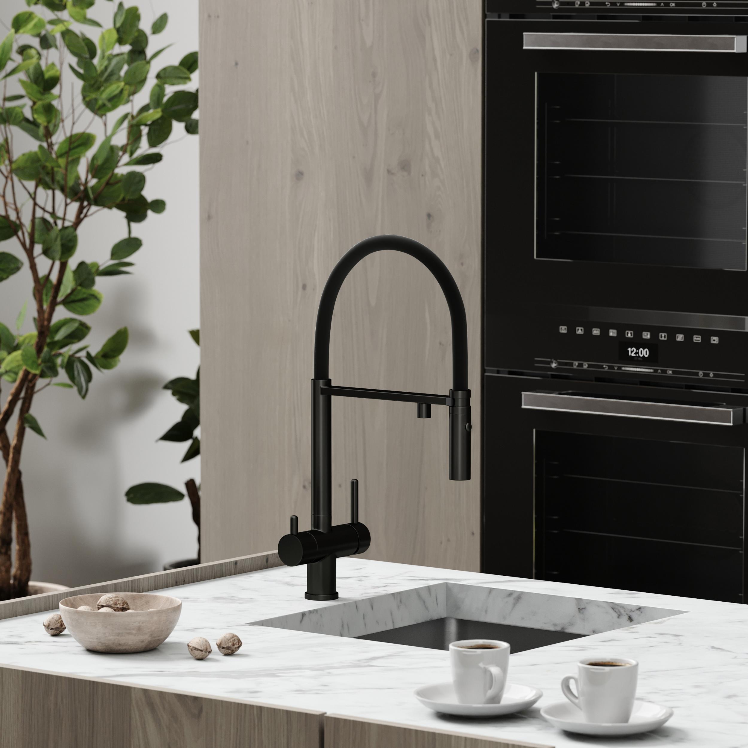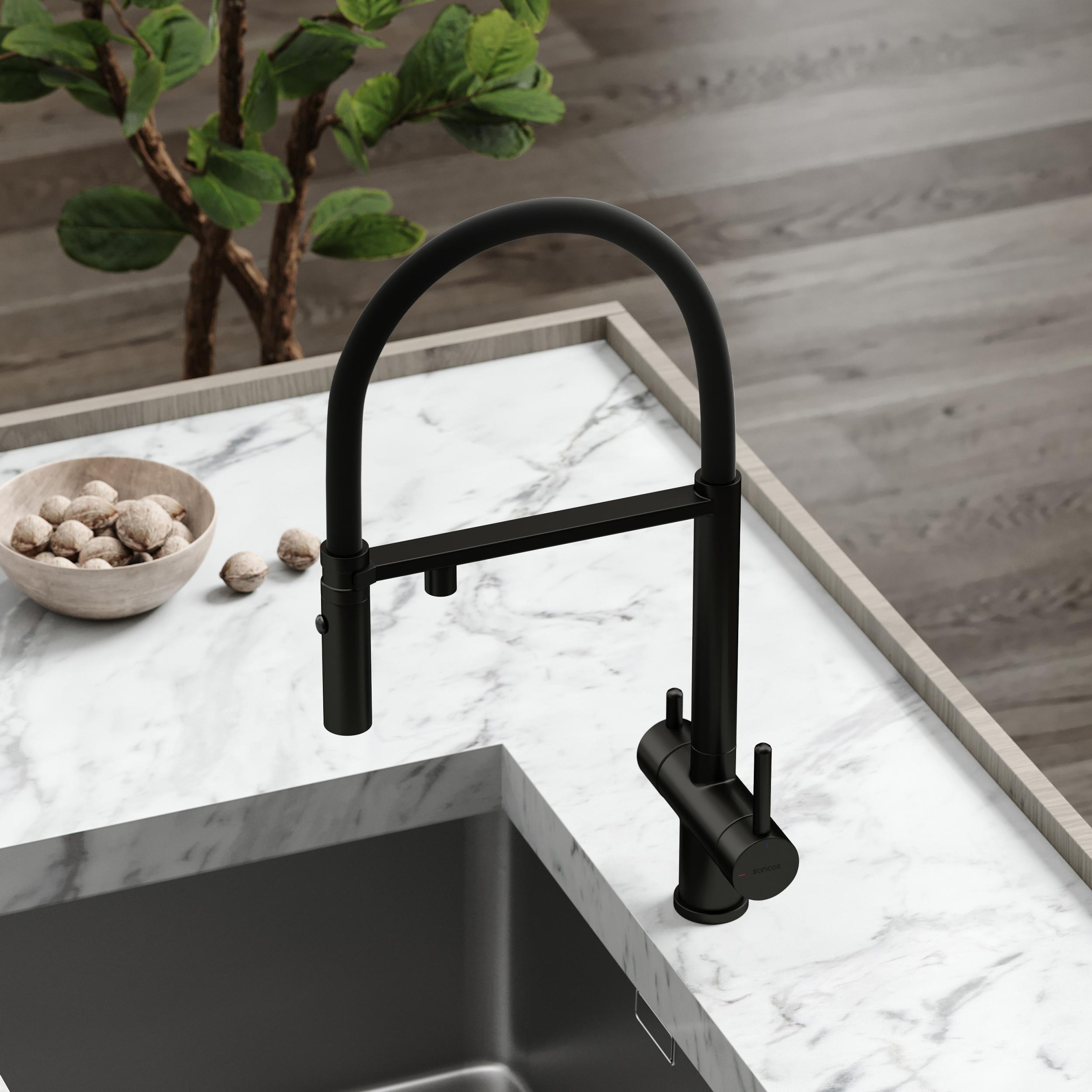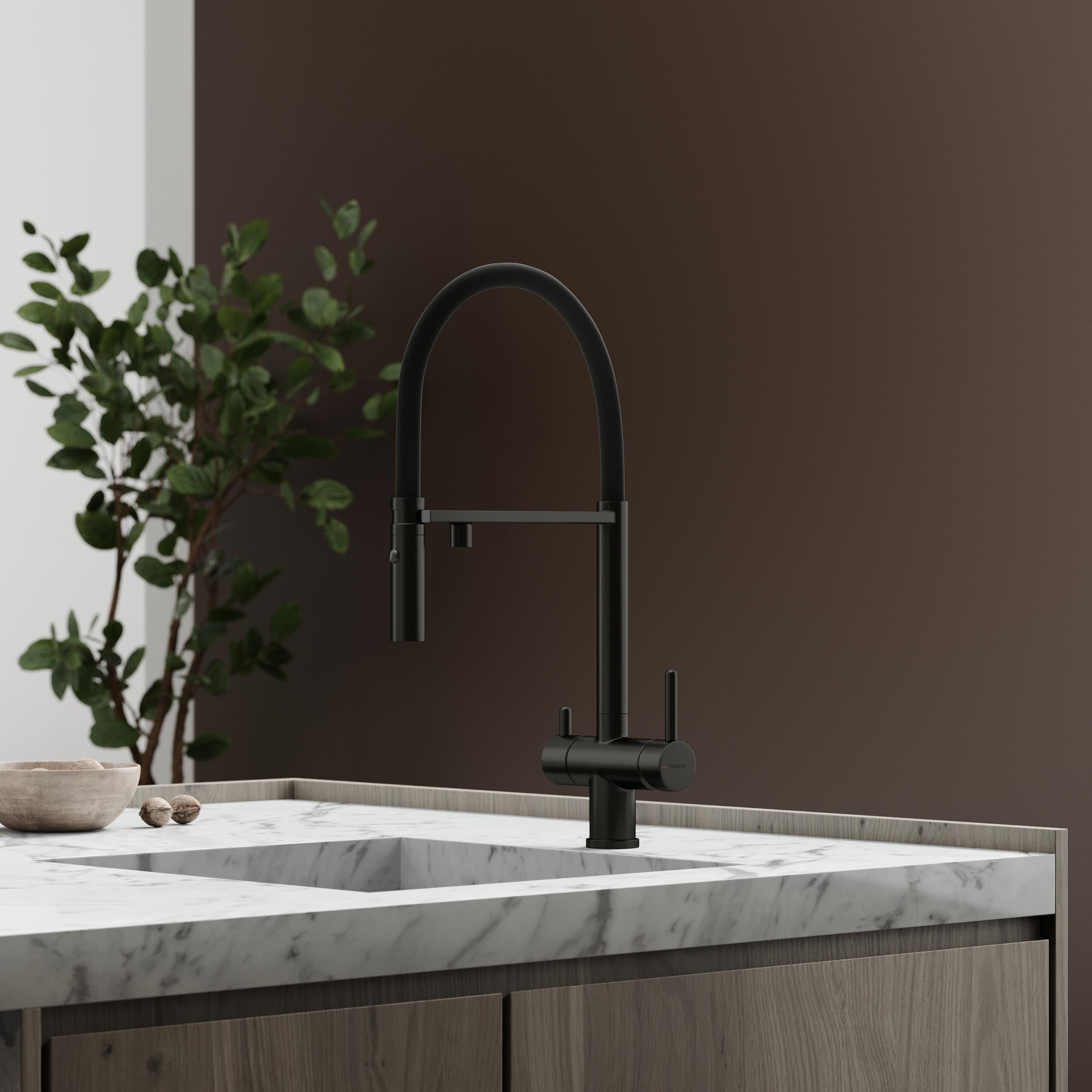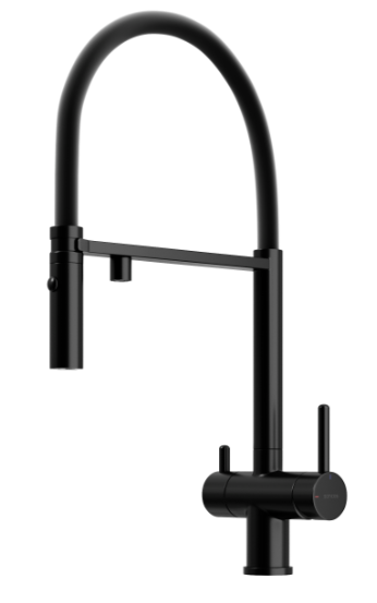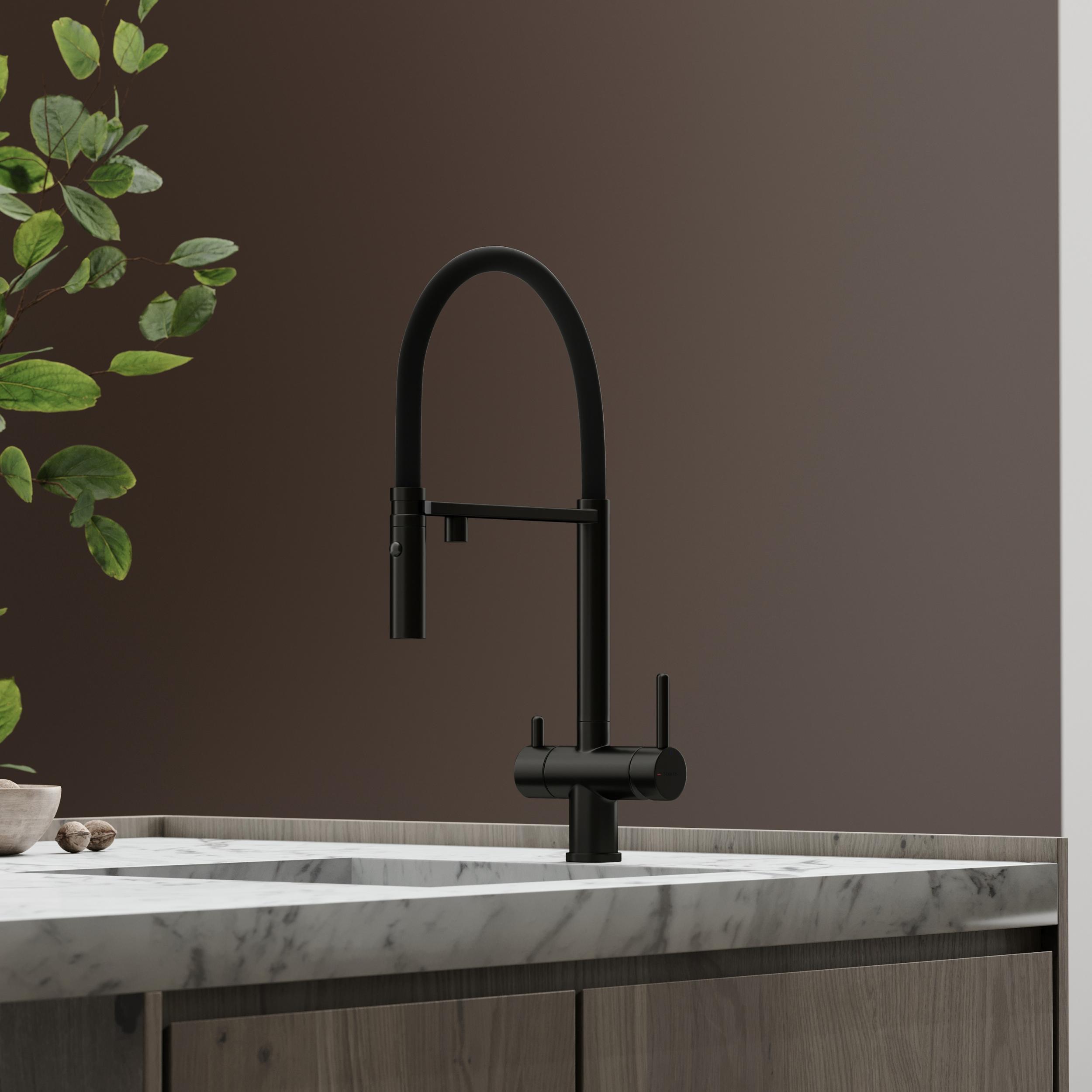 Смеситель для кухни Sancos Imola SC4010MB с гибким, поворотным изливом и подключением фильтра питьевой воды, материал - латунь, цвет - чёрный матовый/чёрный.