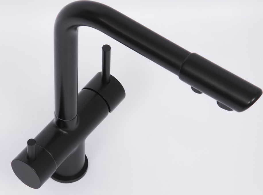 Смеситель для кухни WasserKraft A8367 с поворотным изливом и выводом для питьевой воды, материал - латунь, цвет - черный матовый.