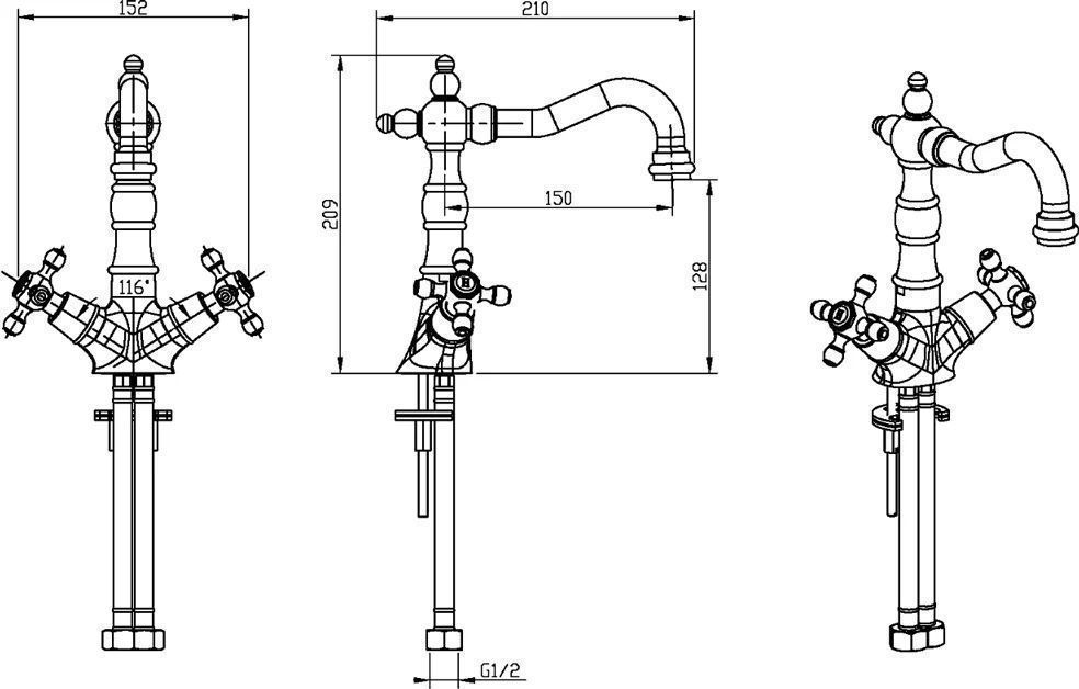 Смеситель для раковины Boheme Satin, материал латунь, цвет золото