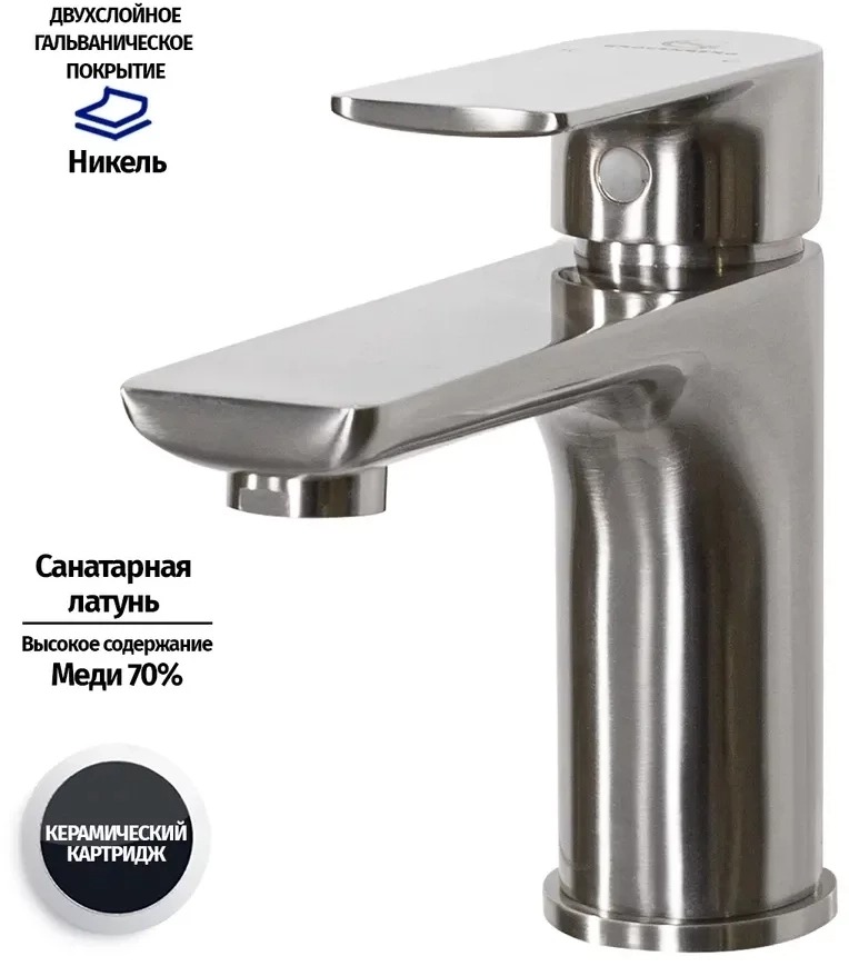 Смеситель для раковины Grocenberg GB2009NK, материал - латунь, цвет - никель.