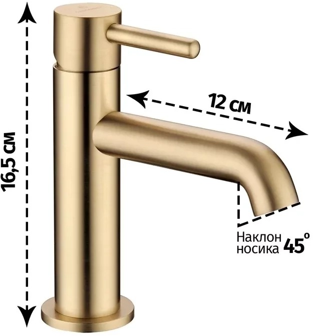 Смеситель для раковины Grocenberg GB2099MG, материал - латунь, цвет - матовое золото.