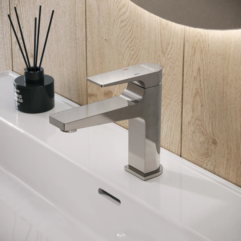 - Брашированное покрытие устойчиво к царапинам и придает смесителю современный, элегантный вид.