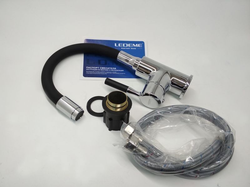 Смеситель для раковины Ledeme, материал латунь, цвет хром/чёрный.