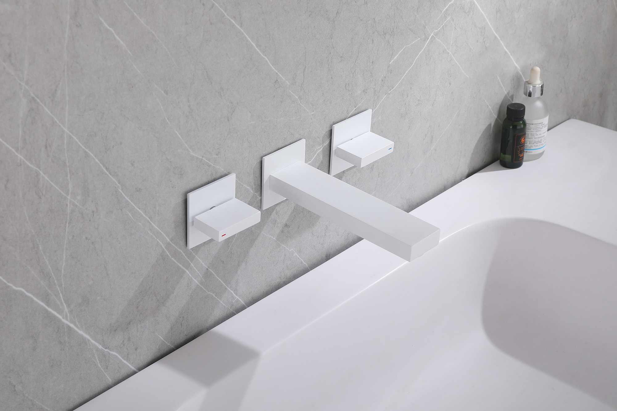 Смеситель для раковины настенный Abber Daheim AF82122W со скрытой частью в комплекте, материал латунь, цвет белый матовый.