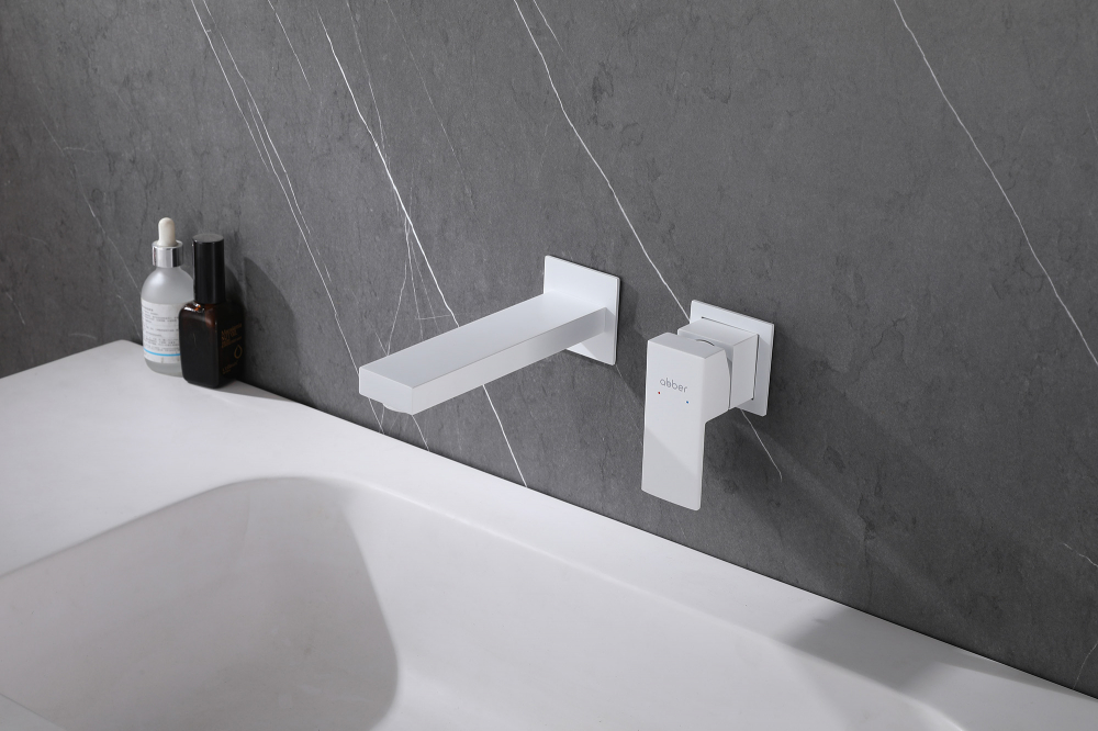 Смеситель для раковины настенный Abber Daheim AF8212W (со скрытой частью) белый матовый