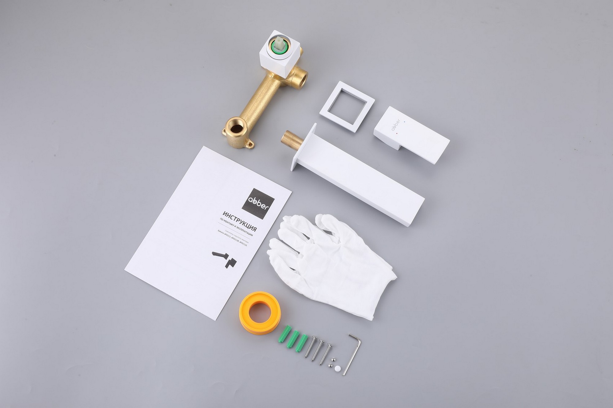 Смеситель для раковины настенный Abber Daheim AF8212W со скрытой частью в комплекте, материал - латунь, цвет - белый матовый.