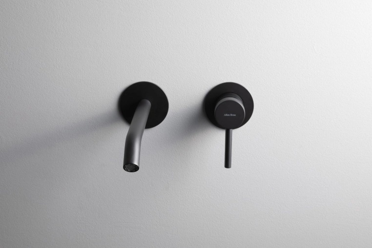 Смеситель для раковины настенный Allen Brau Priority 5.31A03-31 со скрытой частью, материал латунь, цвет чёрный матовый.
