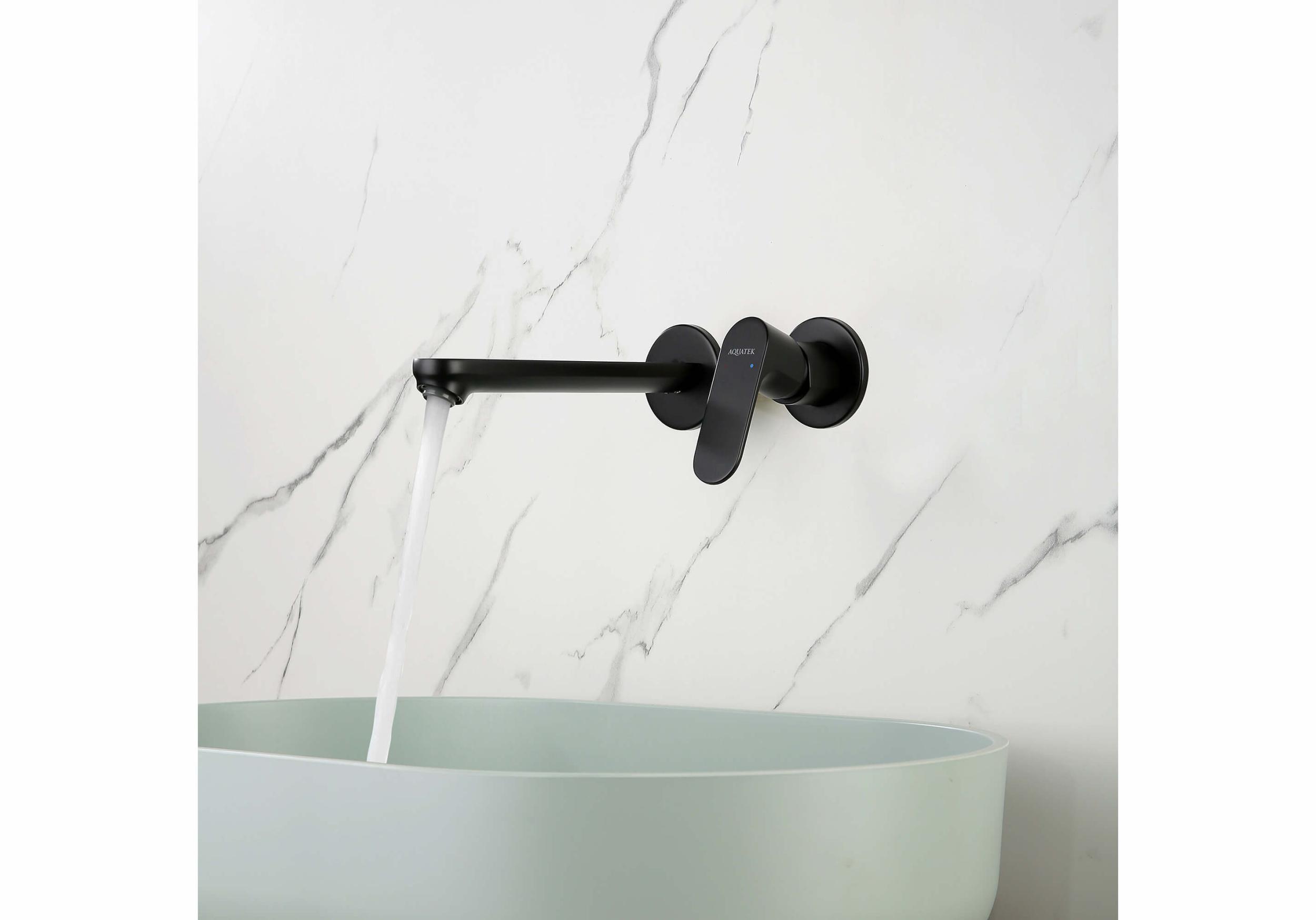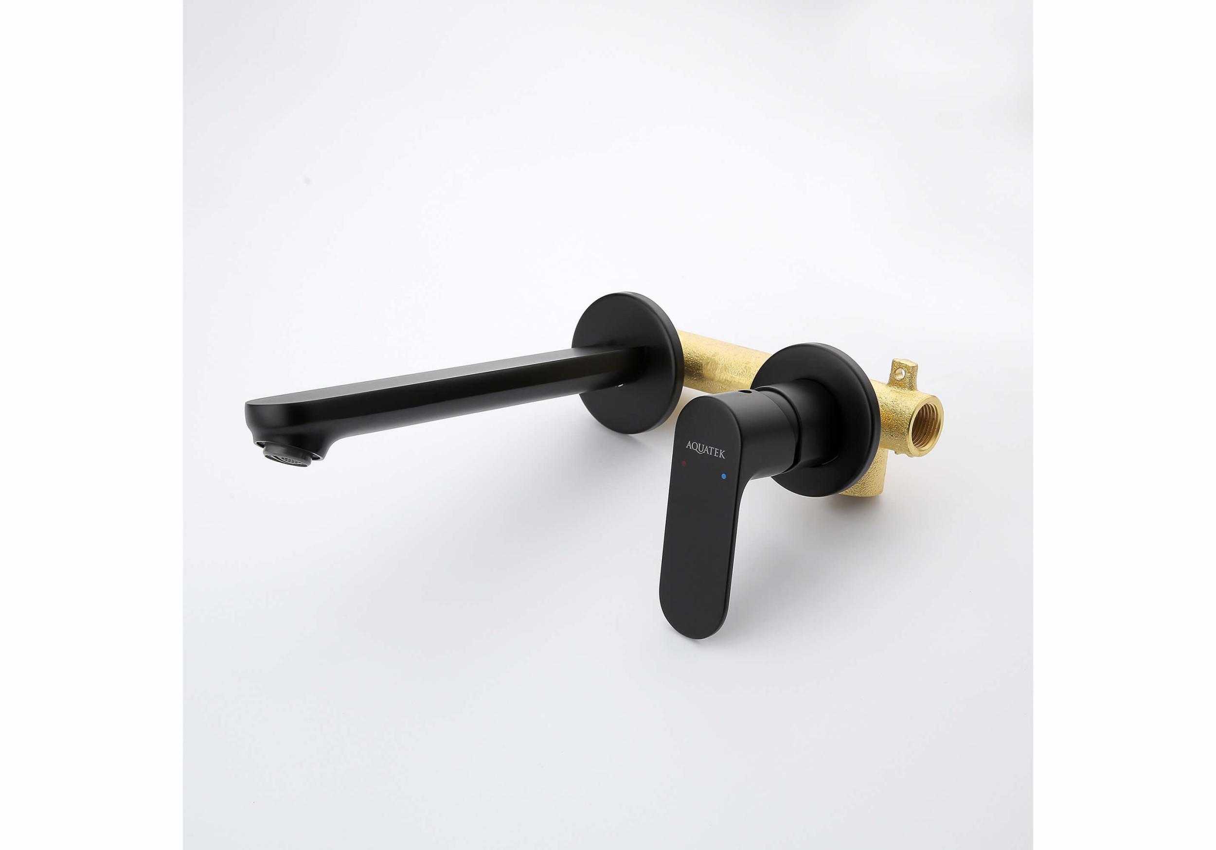 Смеситель для раковины настенный Aquatek Альфа AQ1913MB (со скрытой частью) чёрный матовый