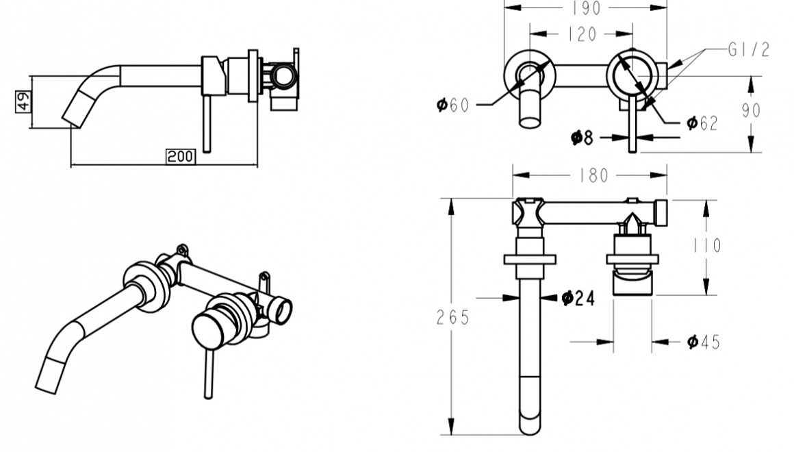 Описание смеситель для раковины настенный Grocenberg GB511BG