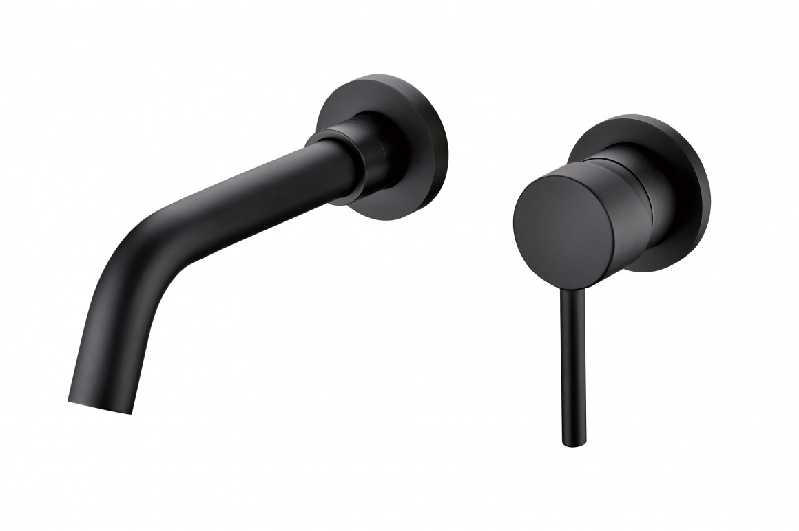 Смеситель для раковины настенный Grocenberg GB511BL (со скрытой частью) чёрный матовый