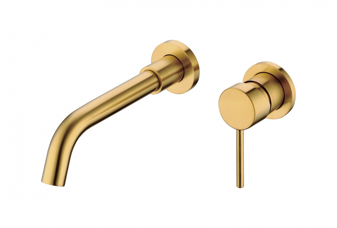 Смеситель для раковины настенный Grocenberg GB511GL (со скрытой частью) золото брашированный