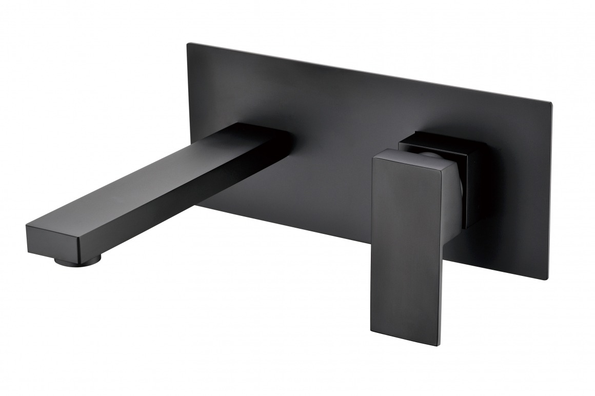 Смеситель для раковины настенный Grocenberg GB588BL (со скрытой частью) чёрный матовый