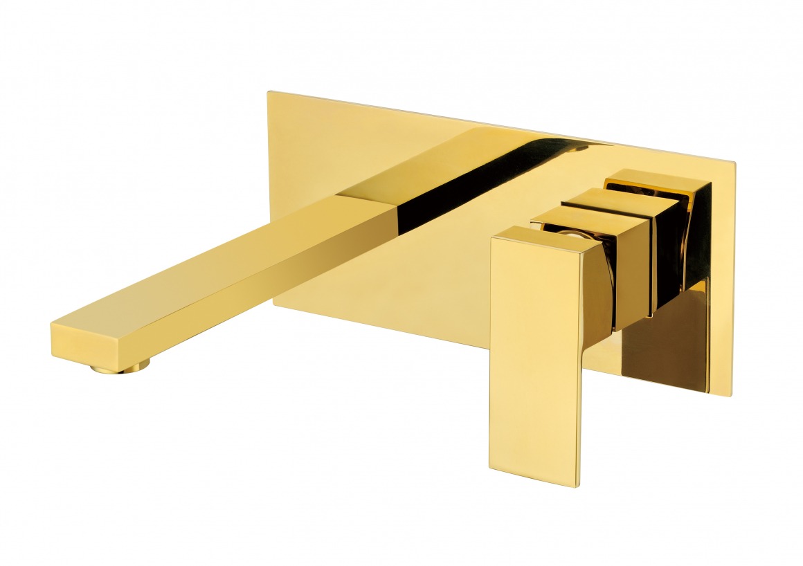 Смеситель для раковины настенный Grocenberg GB588GO (со скрытой частью) золото
