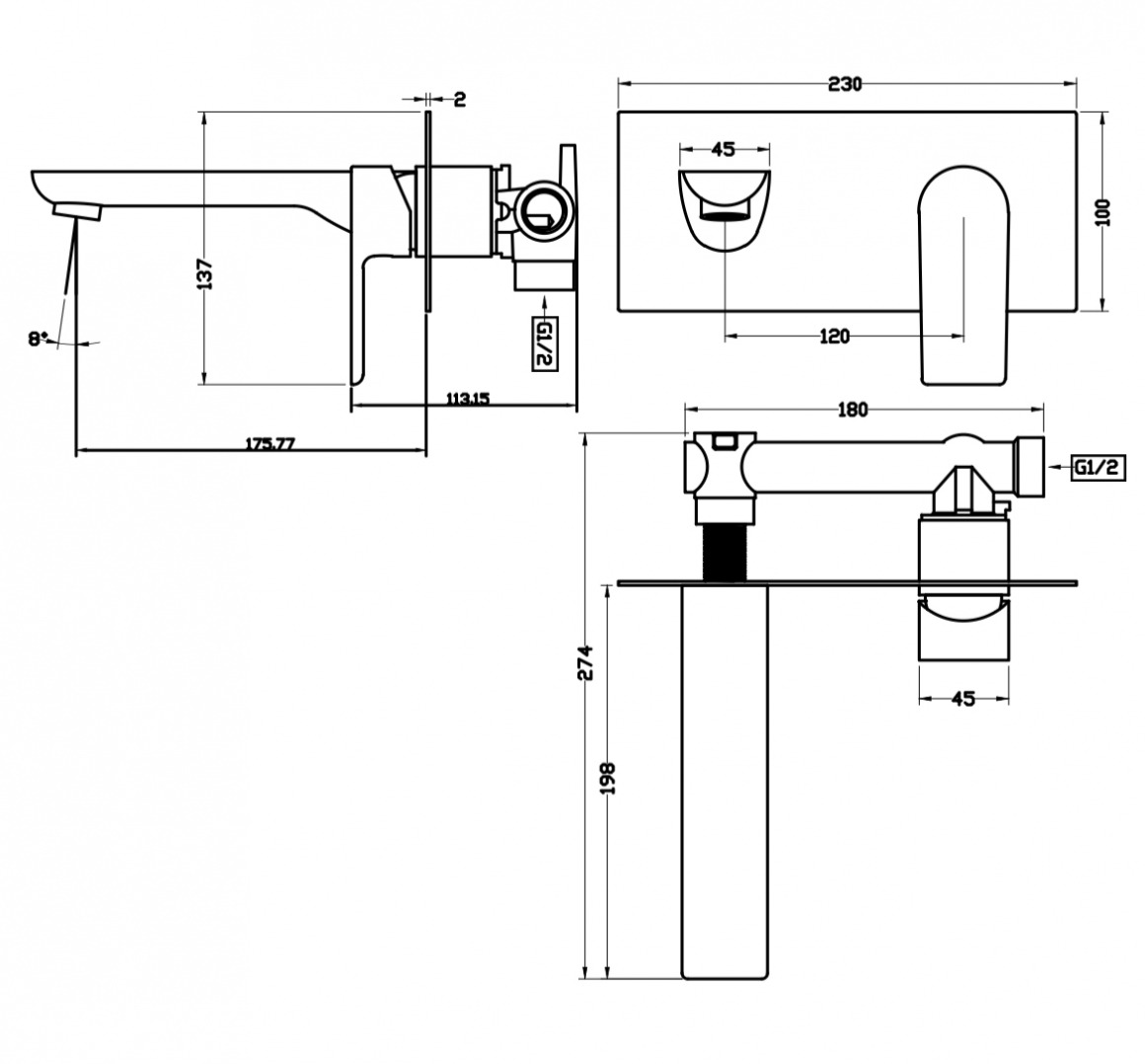 Смеситель для раковины настенный Grocenberg GB599CR (со скрытой частью)
