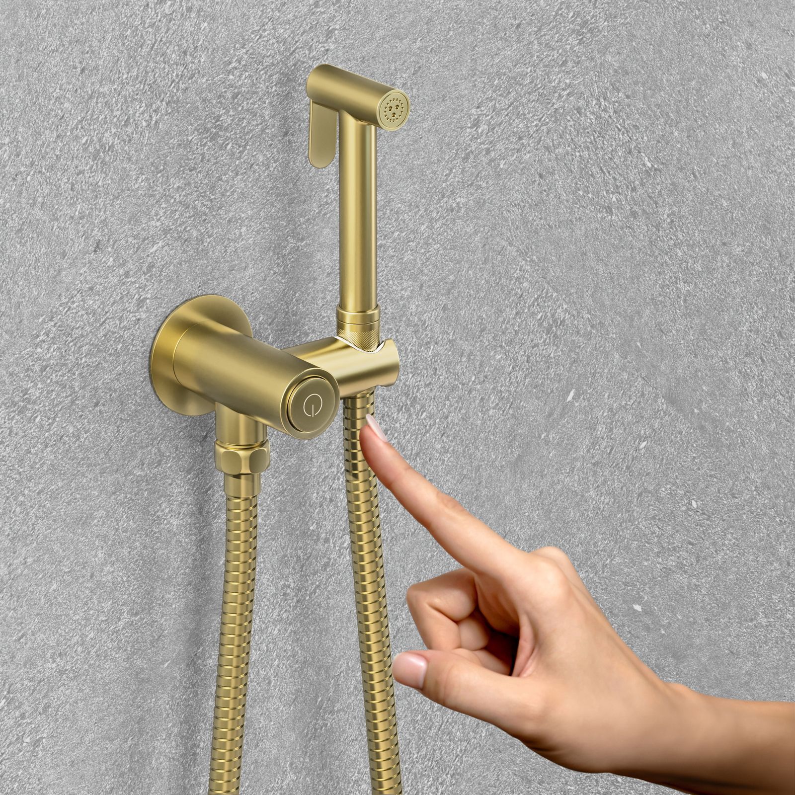 Смеситель для раковины настенный с термостатом и с гигиеническим душем Timo Saona 2383/17SM (со скрытой частью) золото матовое