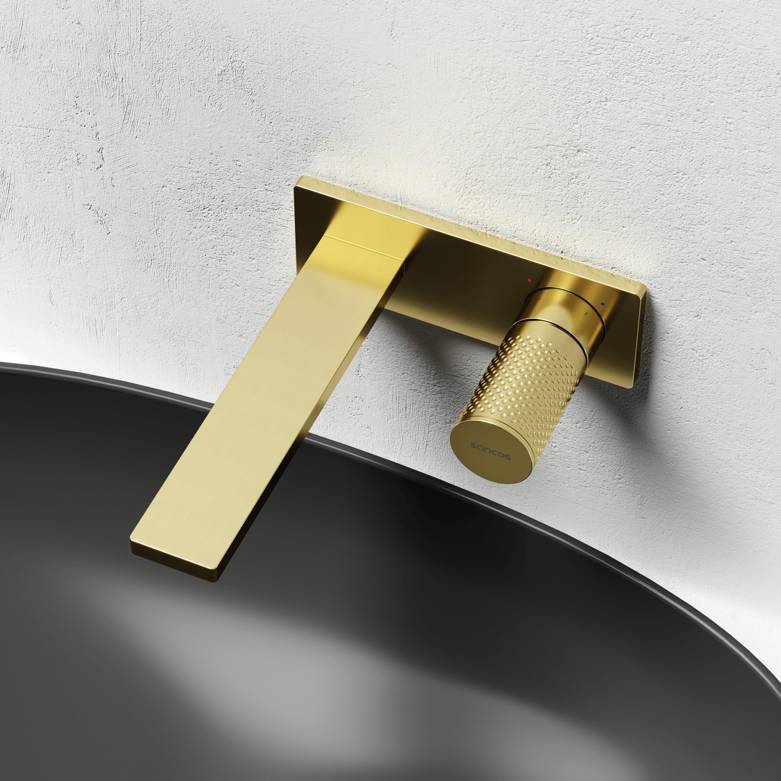 Смеситель для раковины настенный Sancos Nexus SC9013BG, брашированное золото (со скрытой частью)