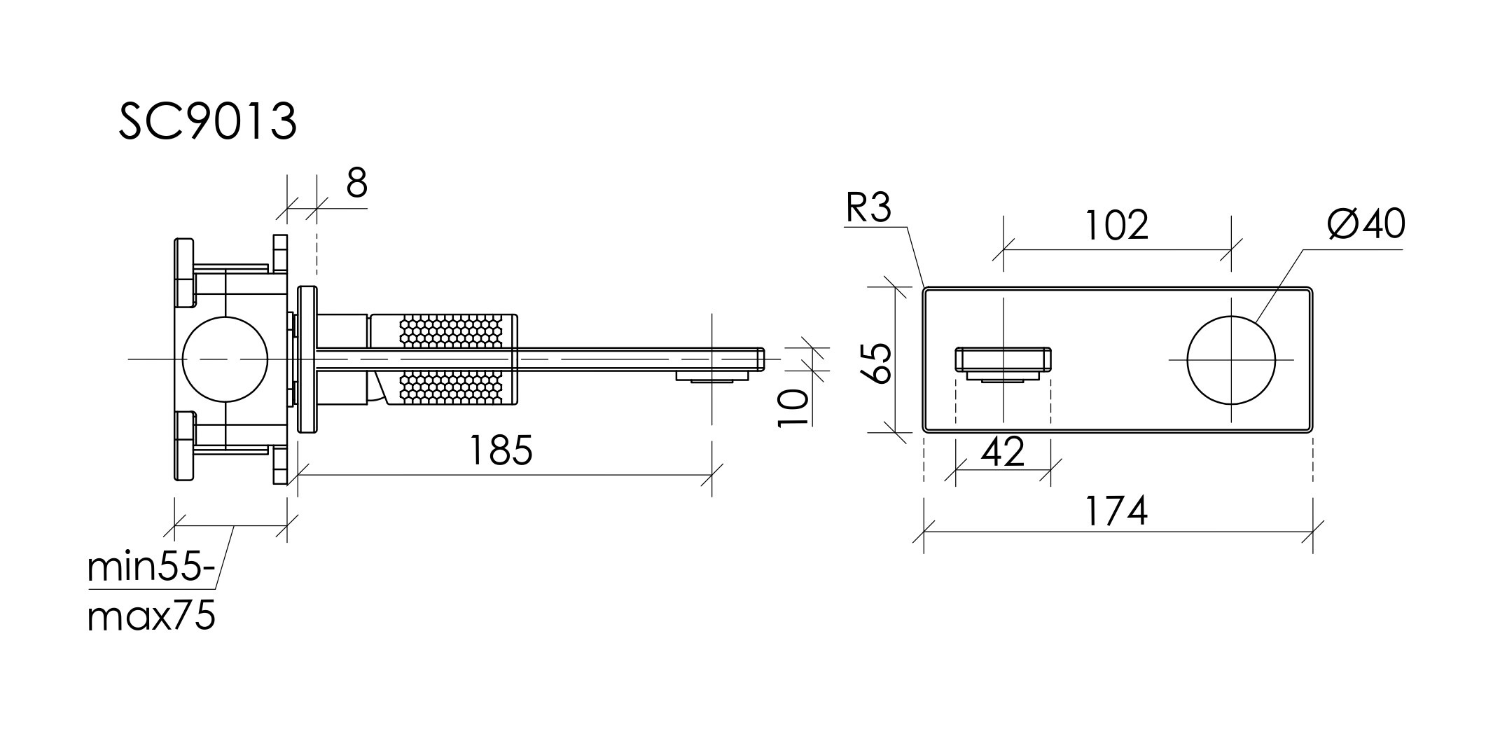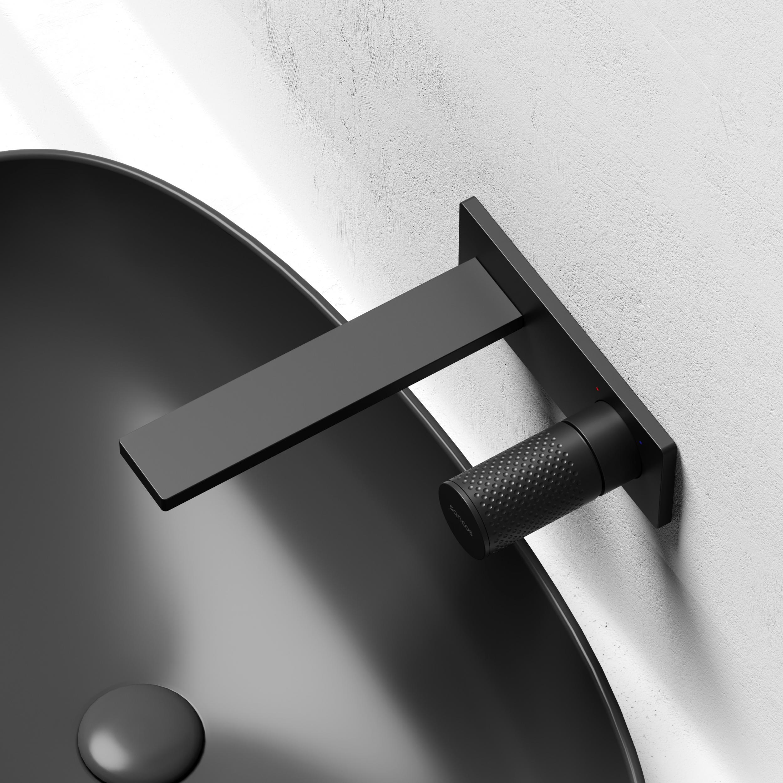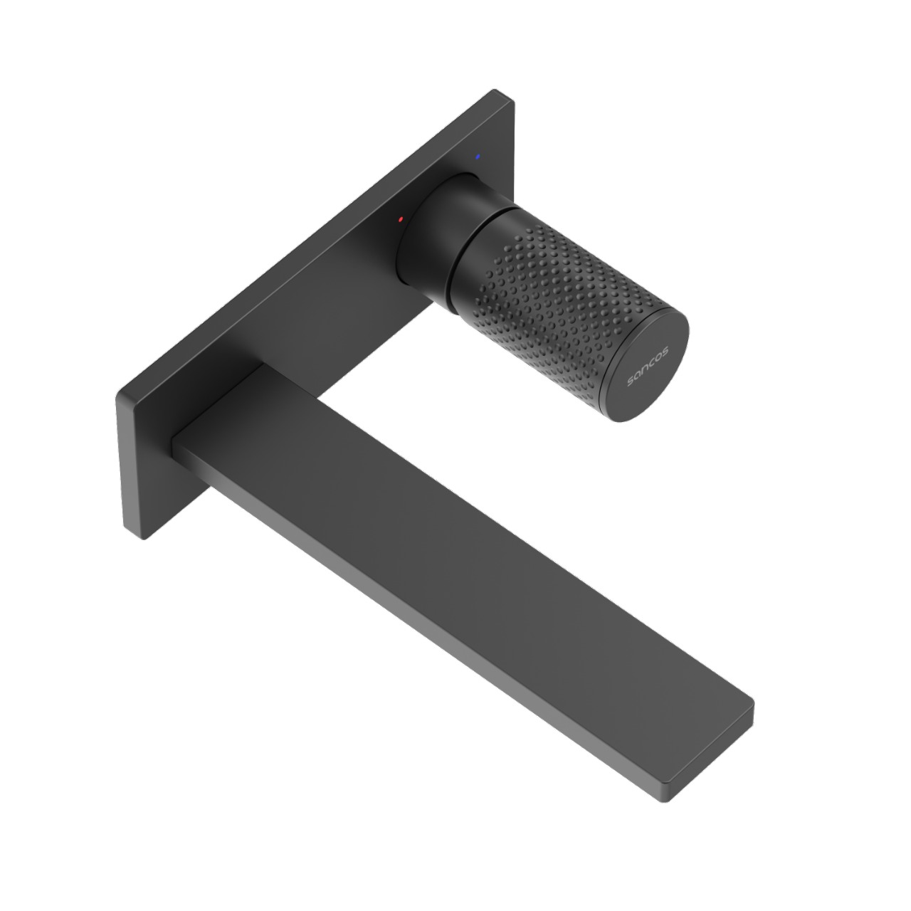 Смеситель для раковины настенный Sancos Nexus SC9013MB, чёрный матовый (со скрытой частью)