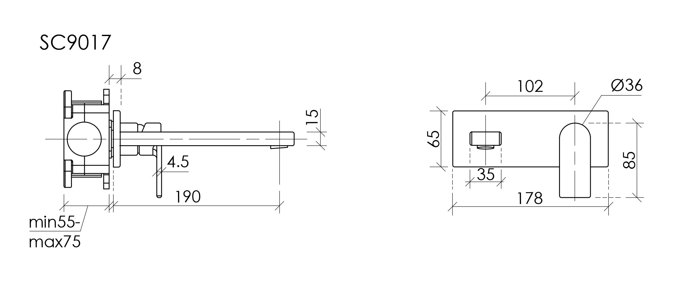 Смеситель для раковины настенный Sancos Studio SC9017CH (со скрытой частью)
