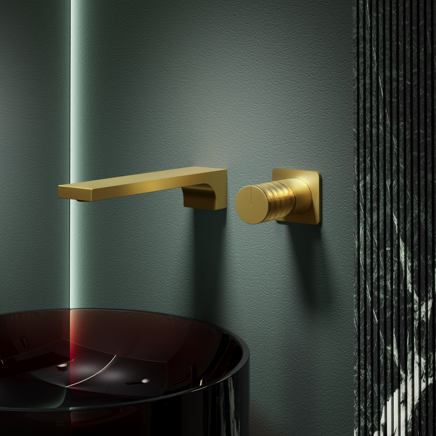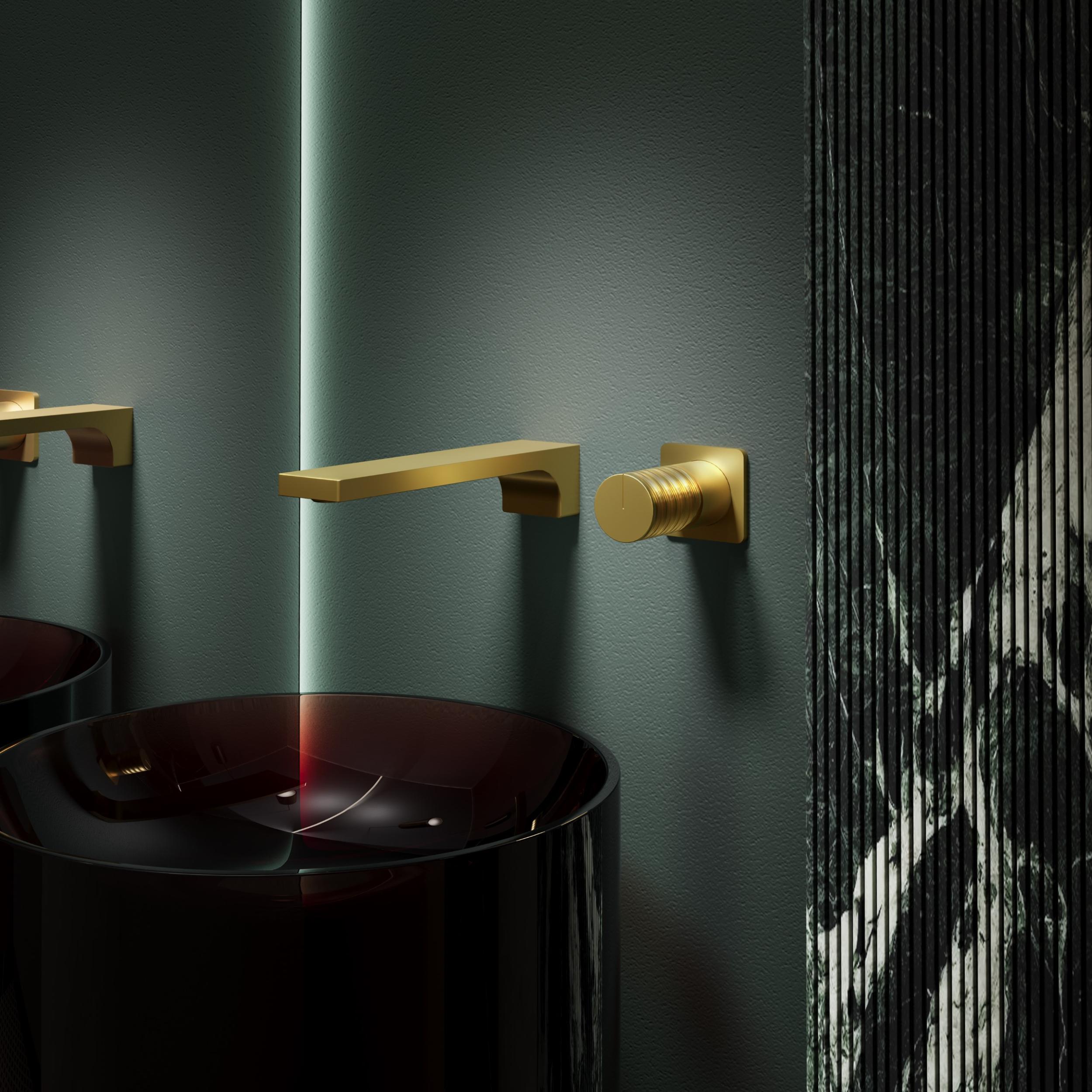 Смеситель для раковины настенный Vincea Domus VBFW-5DM01BG со скрытой частью в комплекте, материал - латунь, цвет - брашированное золото.