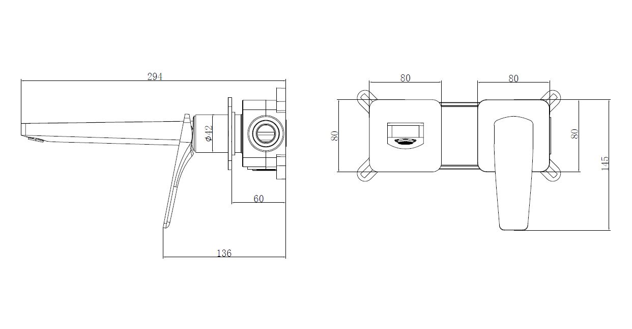 Смеситель для раковины настенный Vincea Puro VBFW-5P01CH (со скрытой частью)