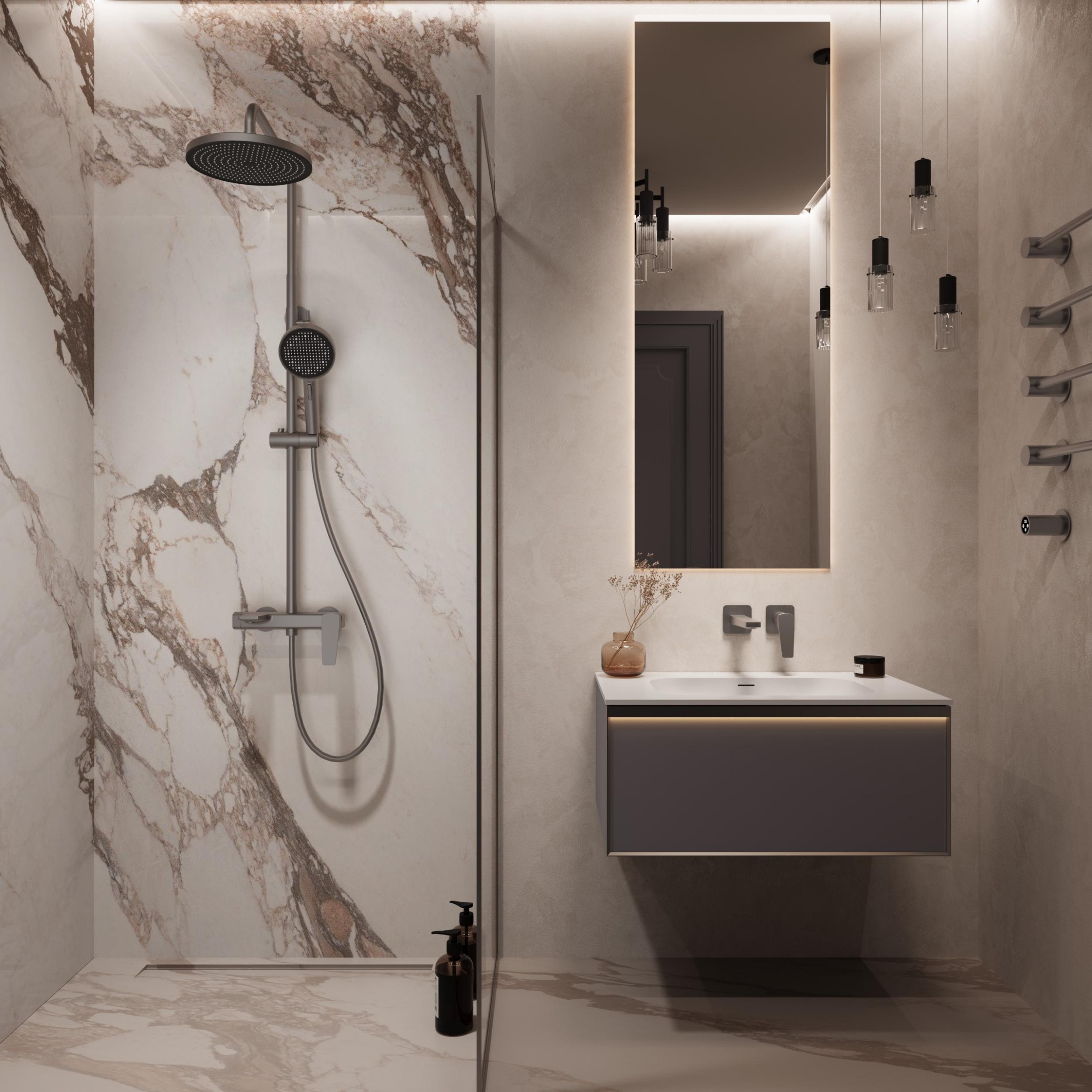 Смеситель для раковины настенный Vincea Puro VBFW-5P01GM (со скрытой частью) вороненая сталь