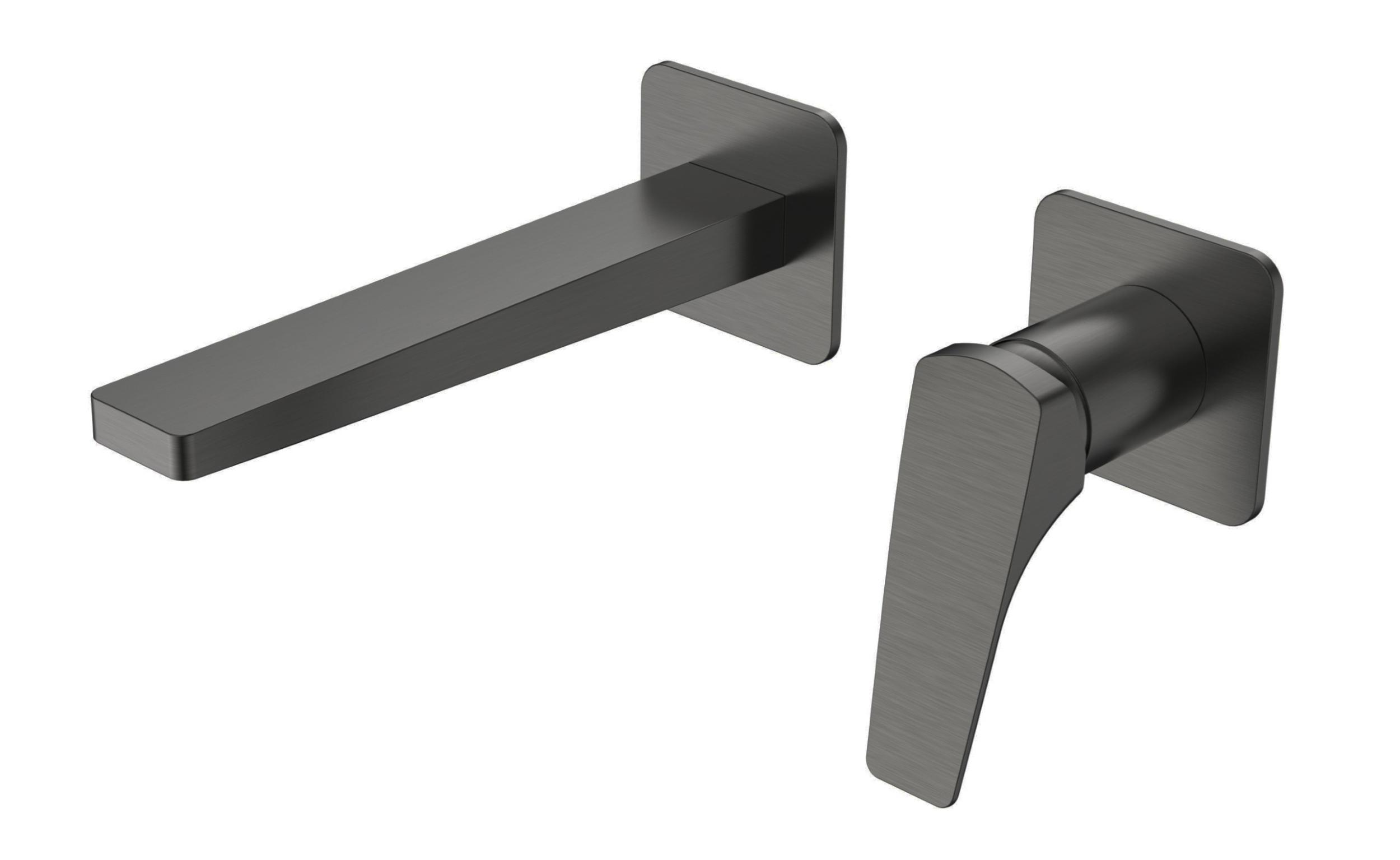 Смеситель для раковины настенный Vincea Puro VBFW-5P01GM со скрытой частью в комплекте, материал - латунь, цвет - вороненая сталь.