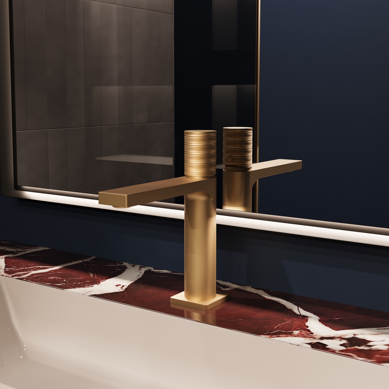 Смеситель для раковины Vincea Domus VBF-5DM01BG, материал - латунь, цвет - золото брашированное.