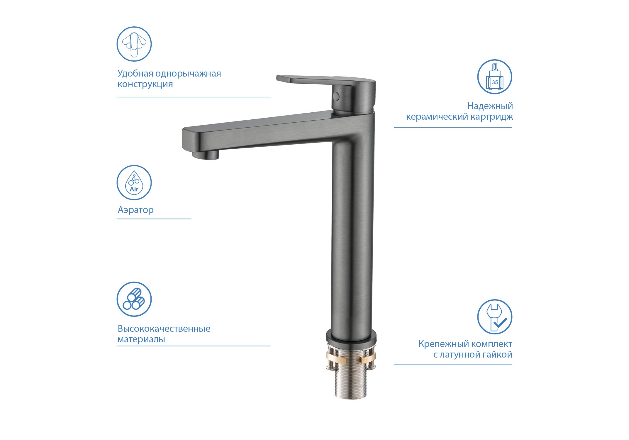Характеристики смеситель для раковины высокий Aquatek (AQ1704BGM)