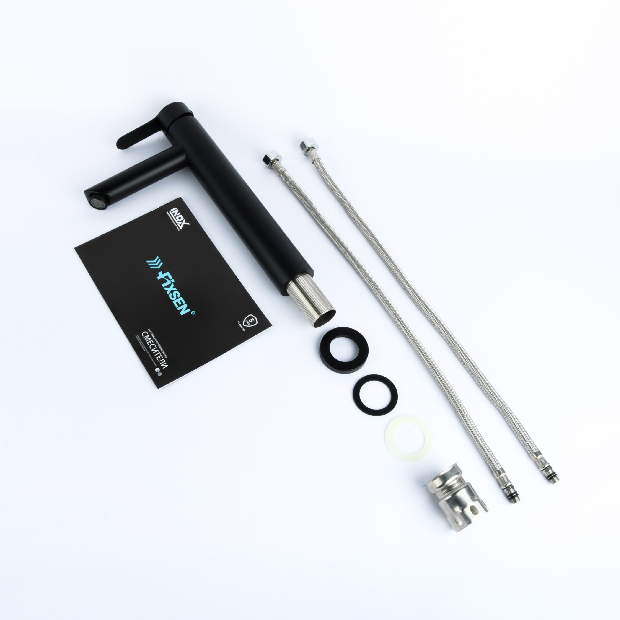 Смеситель для раковины высокий Fixsen NORDIC FX-8809B, чёрный