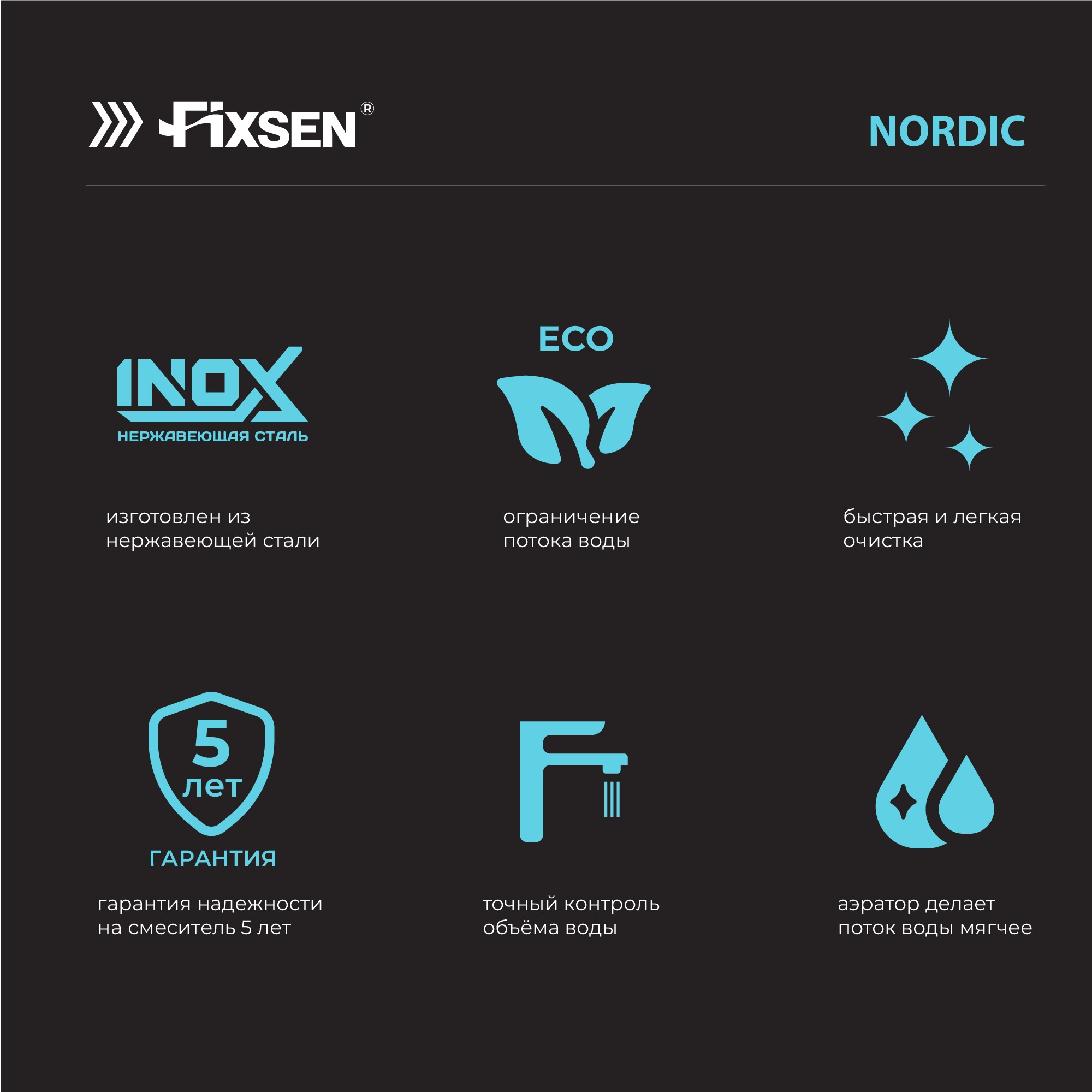 Смеситель для раковины высокий Fixsen NORDIC FX-8809B, материал - нержавеющая сталь, цвет - чёрный.