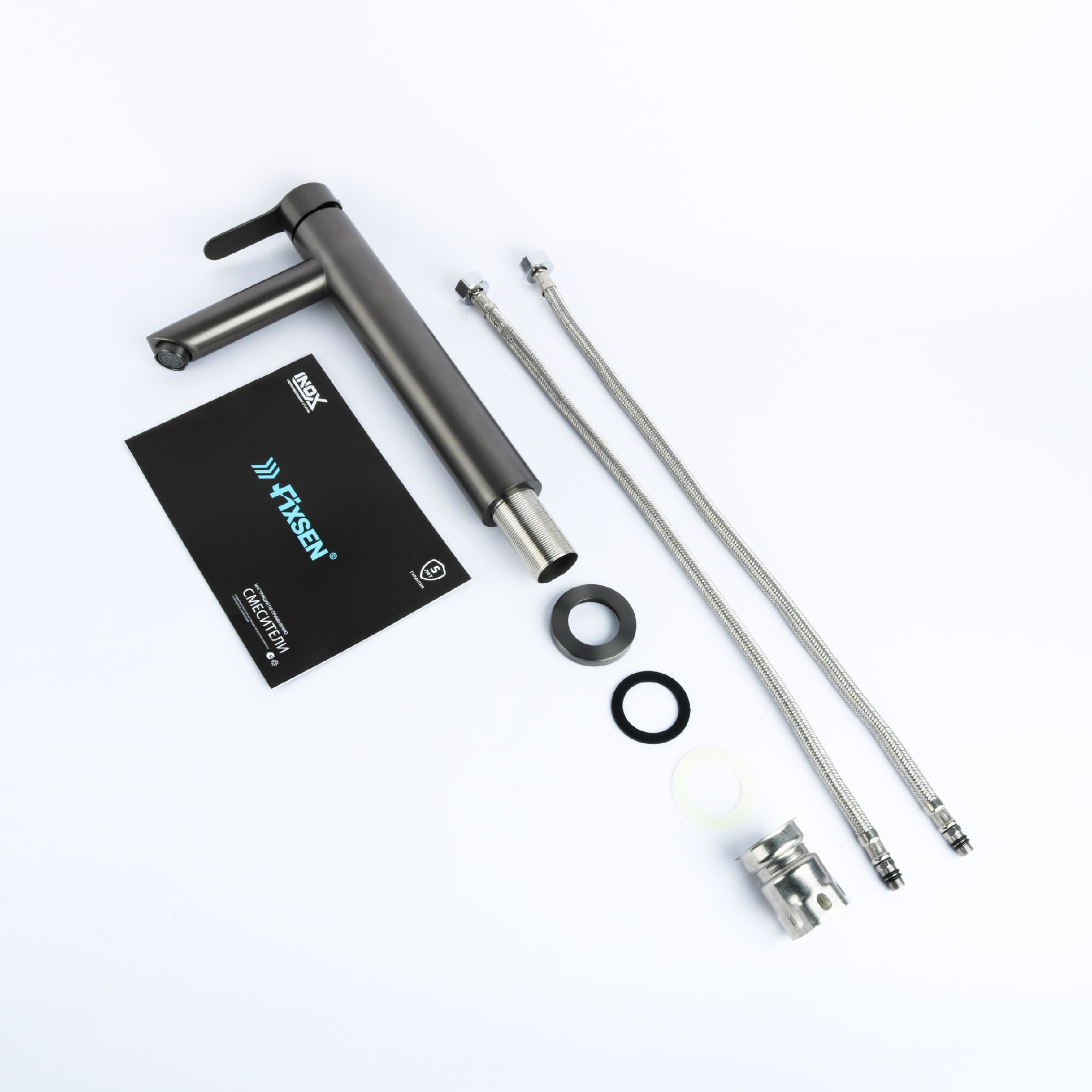 Смеситель для раковины высокий Fixsen NORDIC FX-8809F, материал - нержавеющая сталь, цвет - графит.