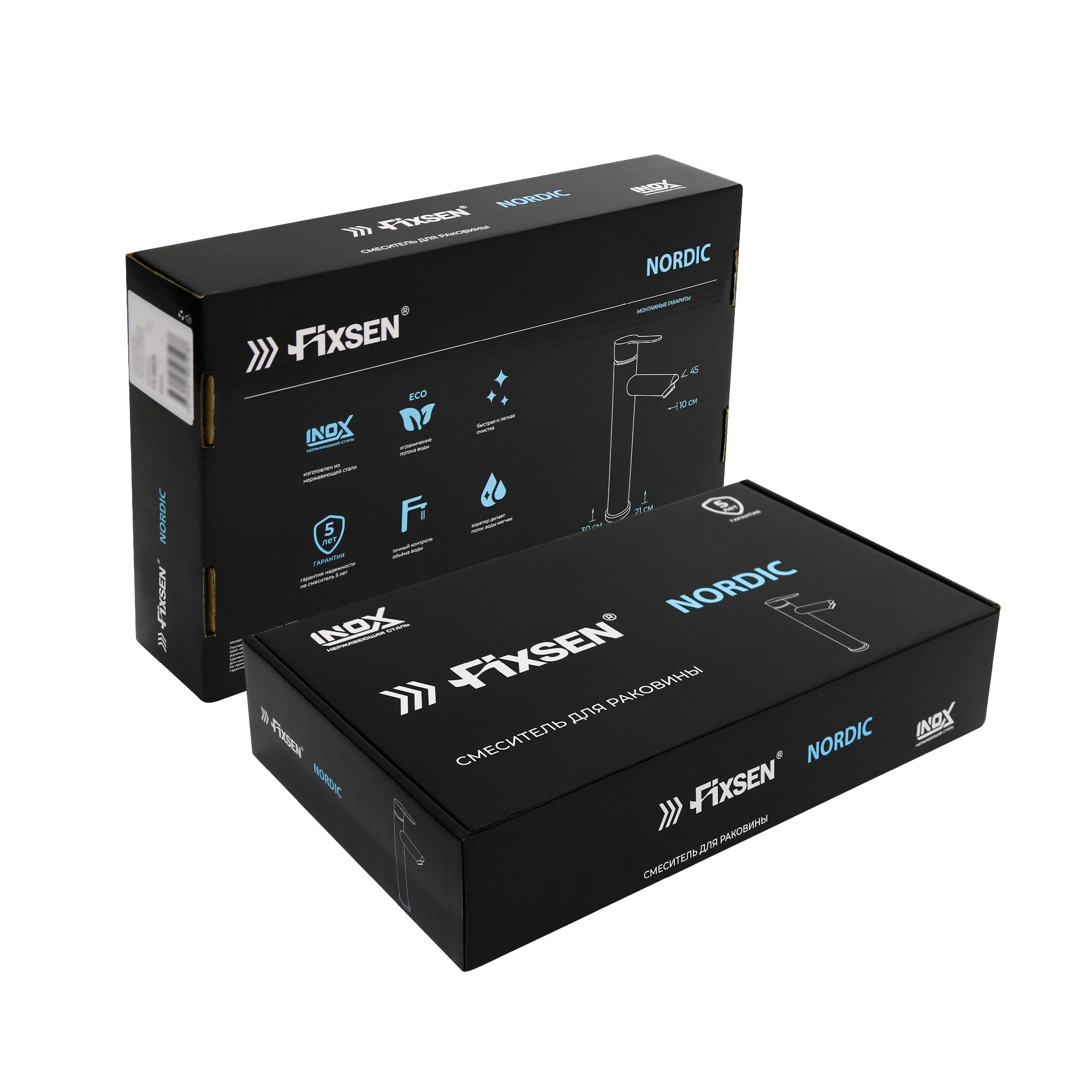 Смеситель для раковины высокий Fixsen NORDIC FX-8809N, материал - нержавеющая сталь, цвет - сатин.