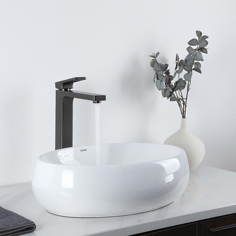 Смеситель для раковины высокий Gappo G1017-92, оружейная сталь