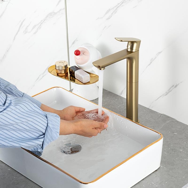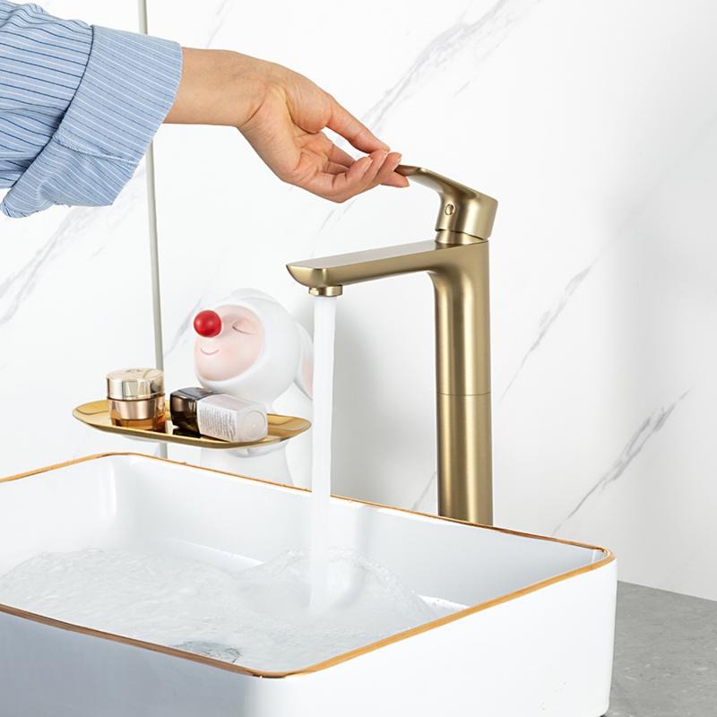 Смеситель для раковины высокий Gappo G48-3 G1048-32, золото сатин
