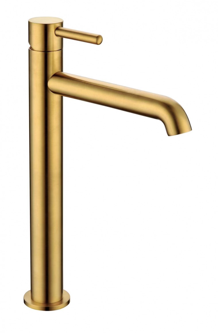 Смеситель для умывальника высокий Grocenberg GB3029GL, золотой брашированный