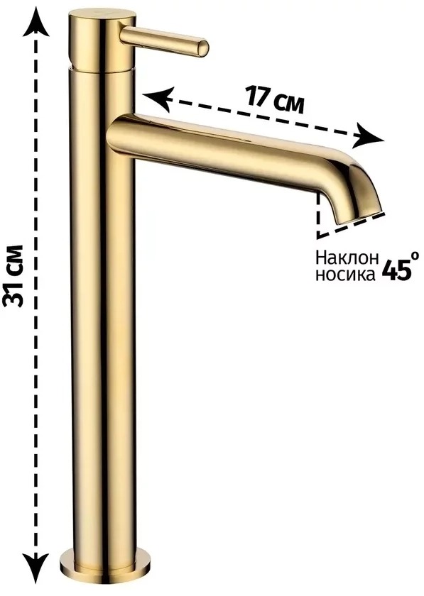 Смеситель для умывальника высокий Grocenberg GB3029GO, материал латунь, цвет - золото.