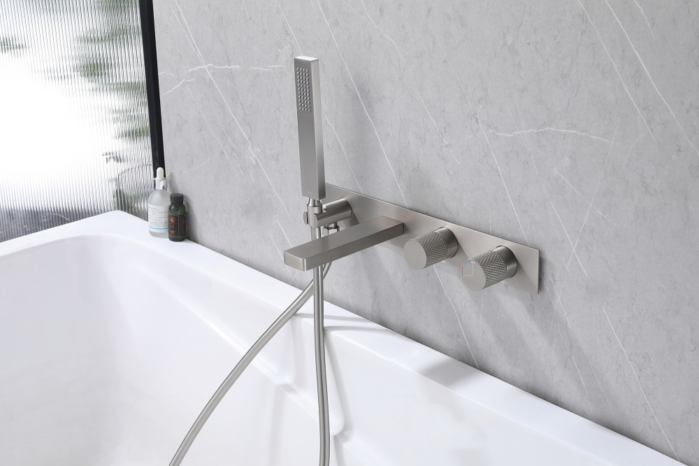 Смеситель для ванны Abber Rund AF8730SP с душевым гарнитуром и скрытой частью в комплекте, материал латунь, цвет сатин.