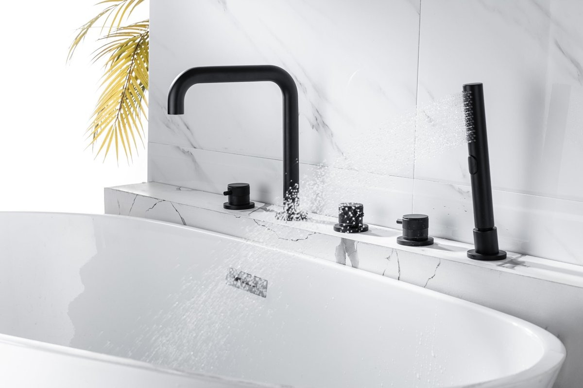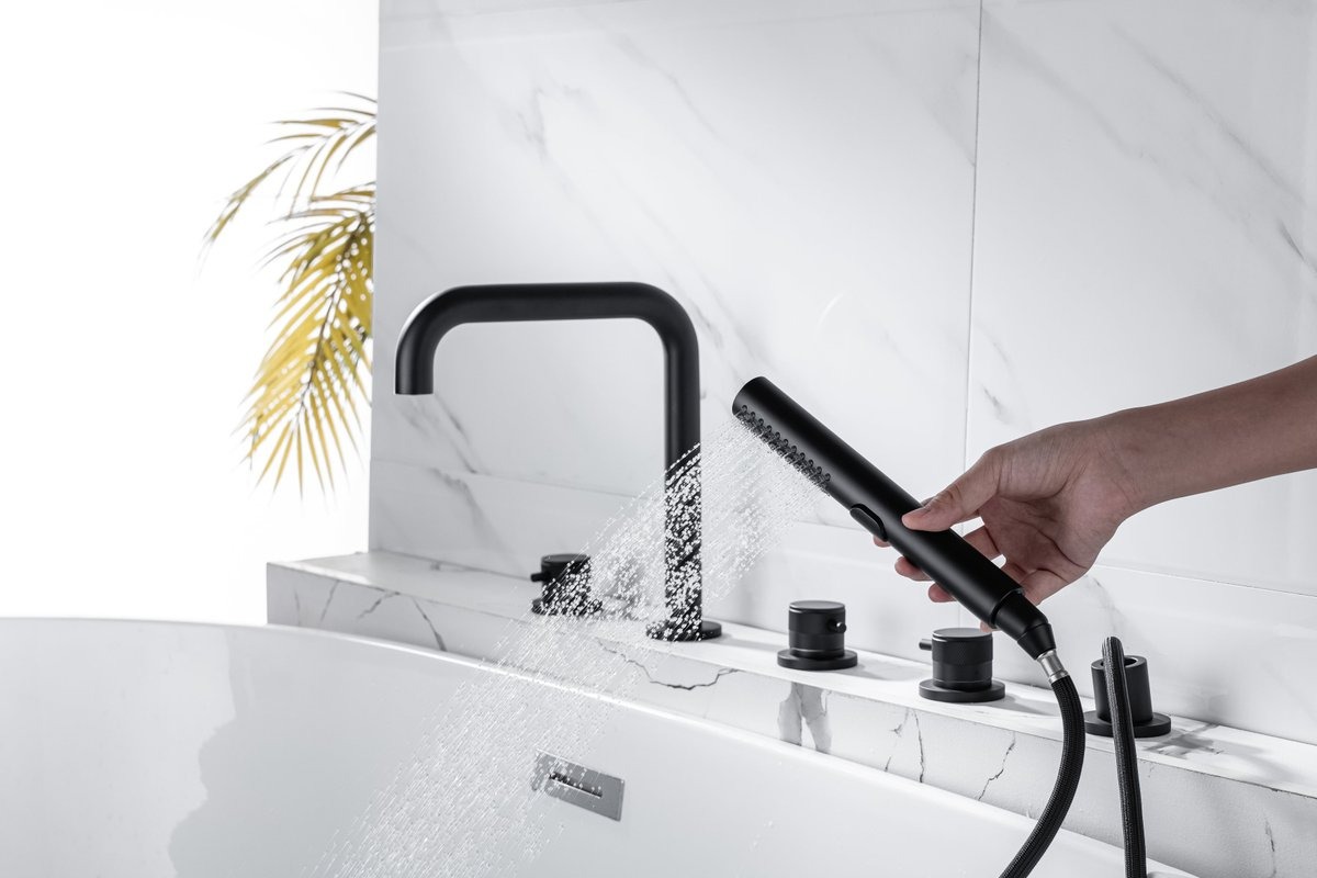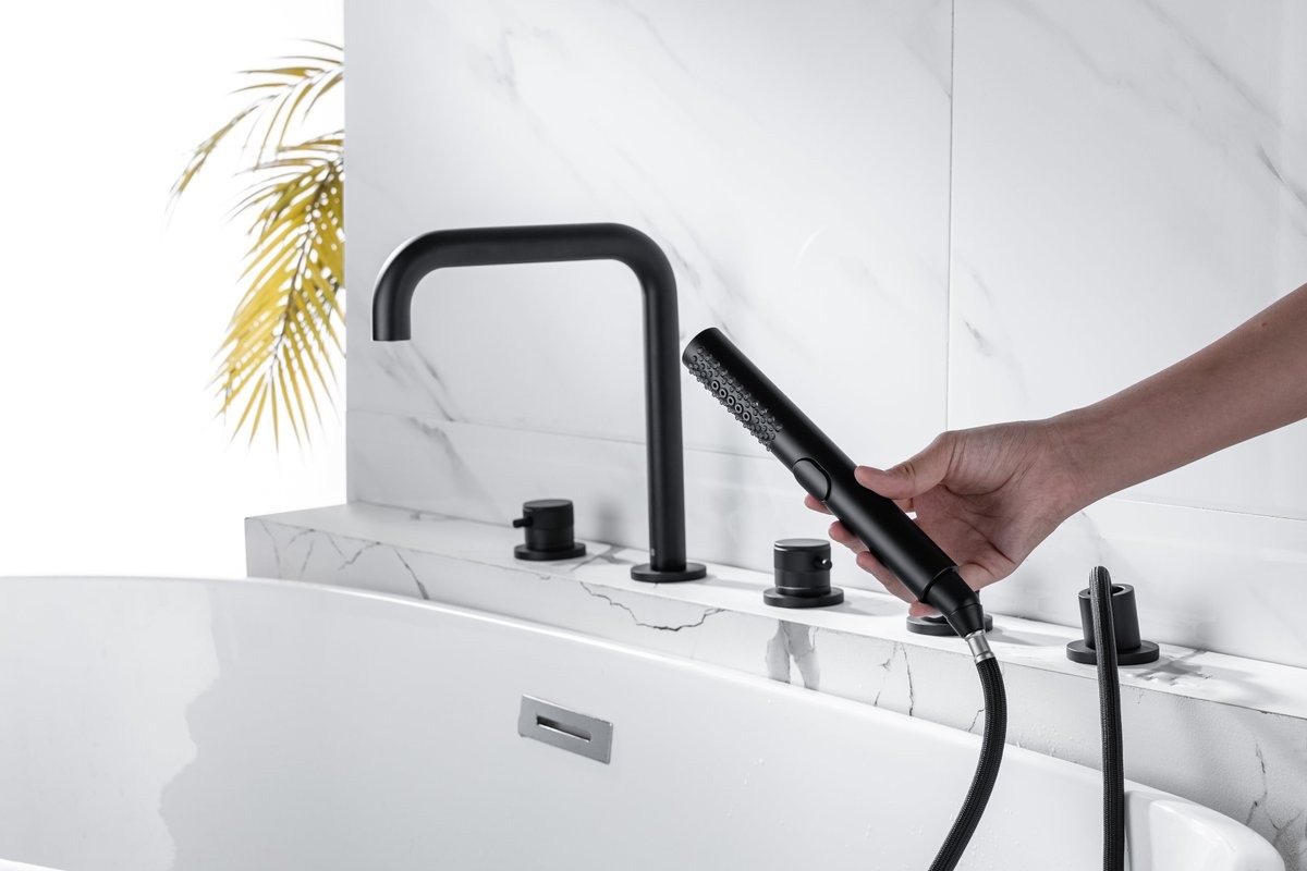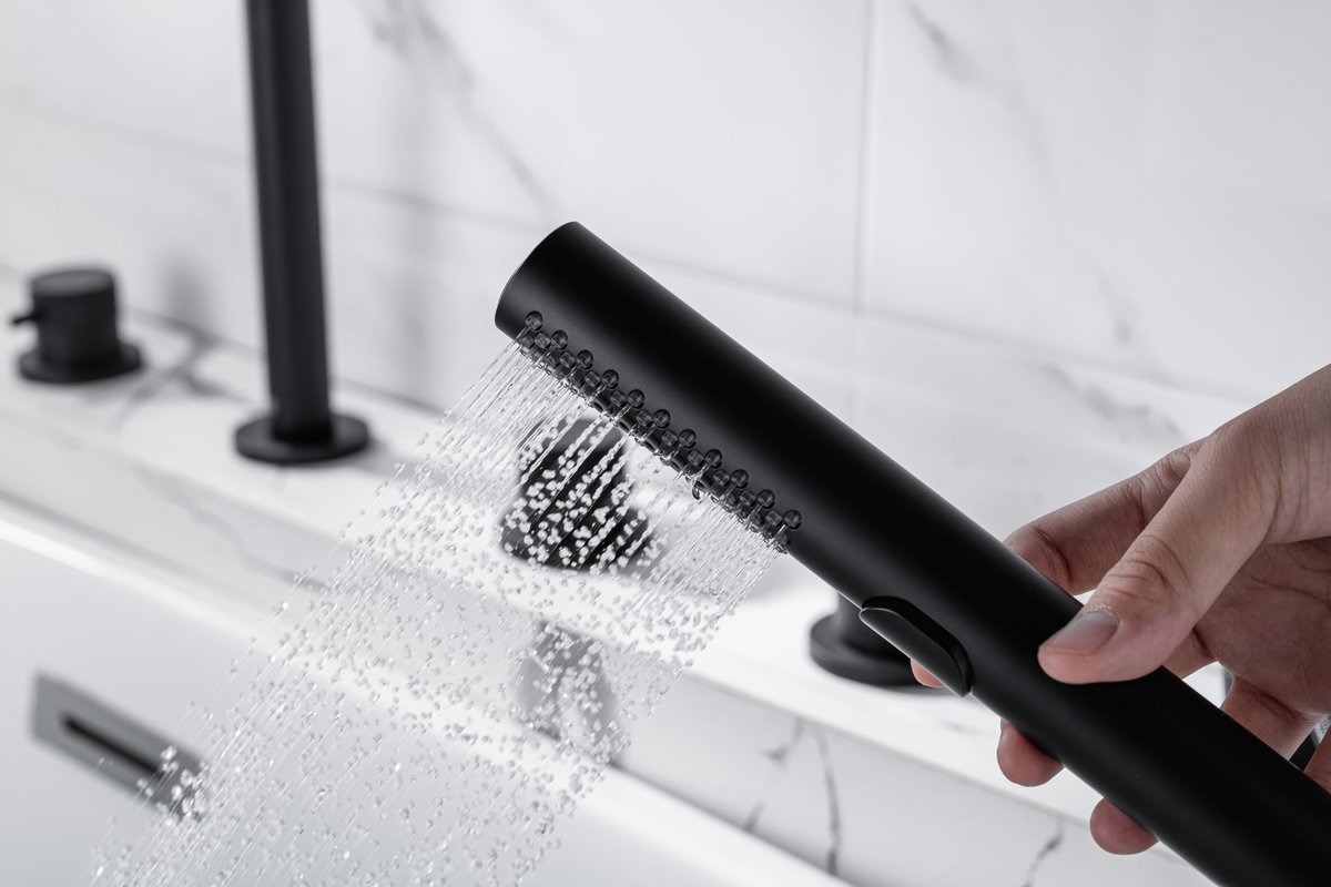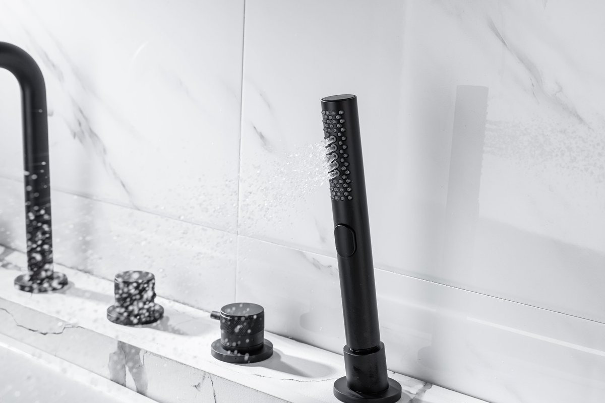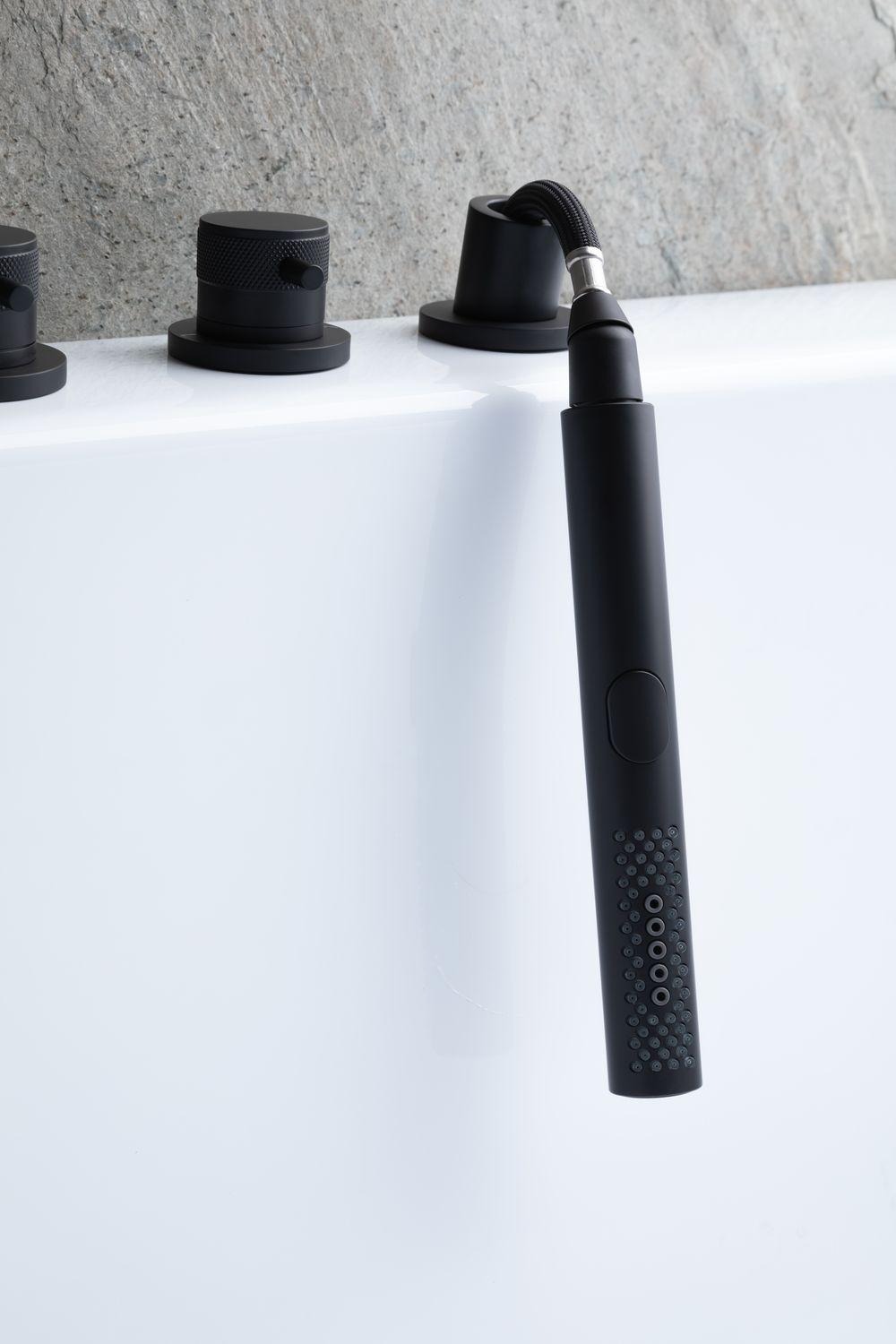 Смеситель для ванны Allen Brau Priority 5.31007-31 с душевым гарнитуром и внутренней частью, материал латунь, цвет чёрный матовый.
