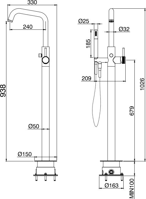 Смеситель для ванны напольный Allen Brau Priority 5.31008-00 со скрытой частью, материал латунь, цвет хром.