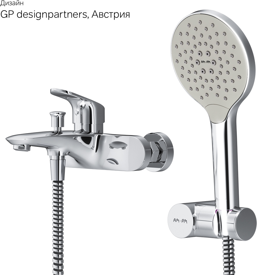 Впервые модный дизайнерский смеситель в доступном сегменте: ультрамодный стиль Dynamic Organic природные формы в сочетании с четкими линиями доведенными до совершенства человеком. Дизайн в котором учтены все детали: благодаря уникальной форме ручки капли воды скатываются предотвращая образование налета а не высыхают на поверхности. Эксклюзивная разработка: специально спроектированный для АМ.РМ керамический картридж SoftMotion 35 мм обеспечивает широкую зону движения ручки для оптимальной регулировки температуры и напора а также позволяет выдерживать любые перепады давления. Переключение режимов ванна-душ больше не доставит хлопот: идеальное сочетание пневматического переключения с механическим срабатывает безукоризненно в 100% случаев даже при низком напоре воды.В комплекте душевой набор: стильный ручной душ 120 мм 3 режима настенный держатель с регулировкой угла наклона душевой шланг с защитой от скручивания.