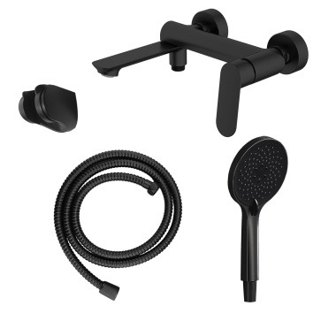 Смеситель для ванны Azario Alanti AZ-K3032B, с душевым гарнитуром и поворотным изливом, материал - латунь, цвет - чёрный матовый.